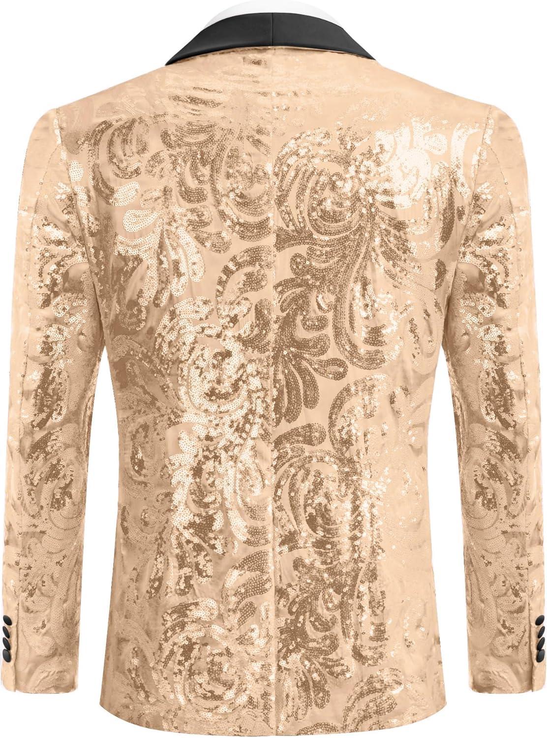COOFANDY Men’s Sequin Blazer Sparkly Glitter Jacket Shiny Floral Suit Jacket Stylish Party Wedding Banquet Prom Tuxedo(Rose Gold)