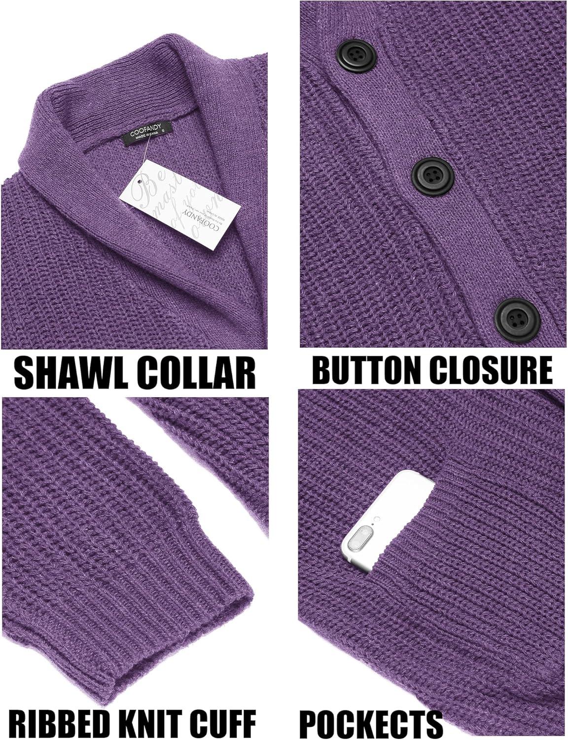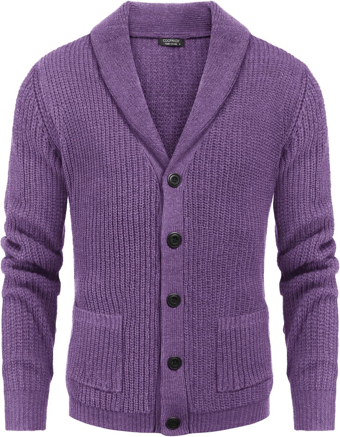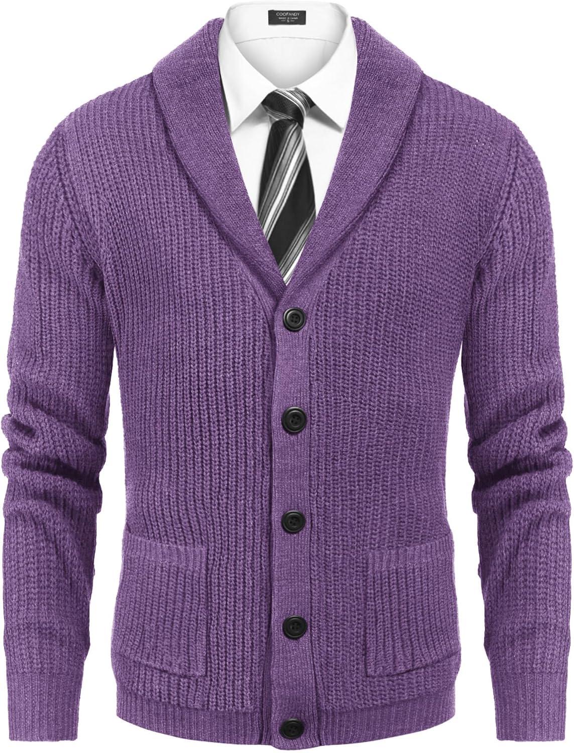 COOFANDY Men’s Shawl Collar Cardigan Sweater Slim Fit Cable Knit Button up Sweater with Pockets(Purple)