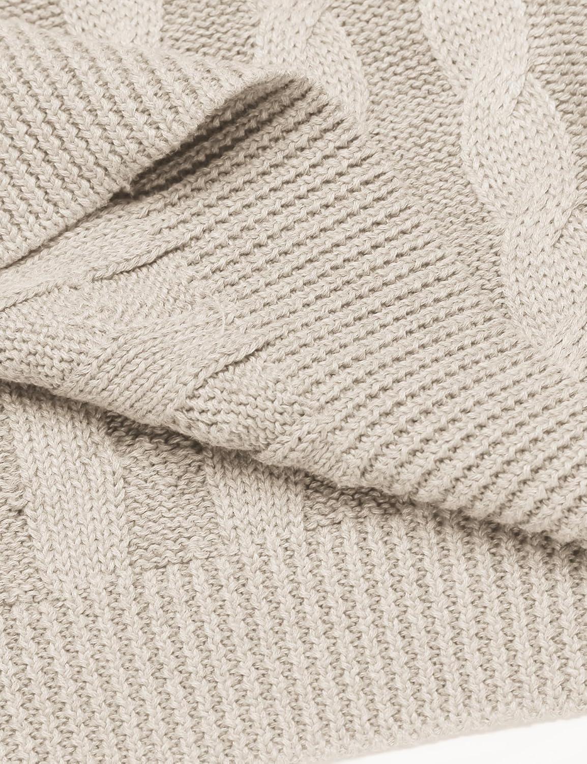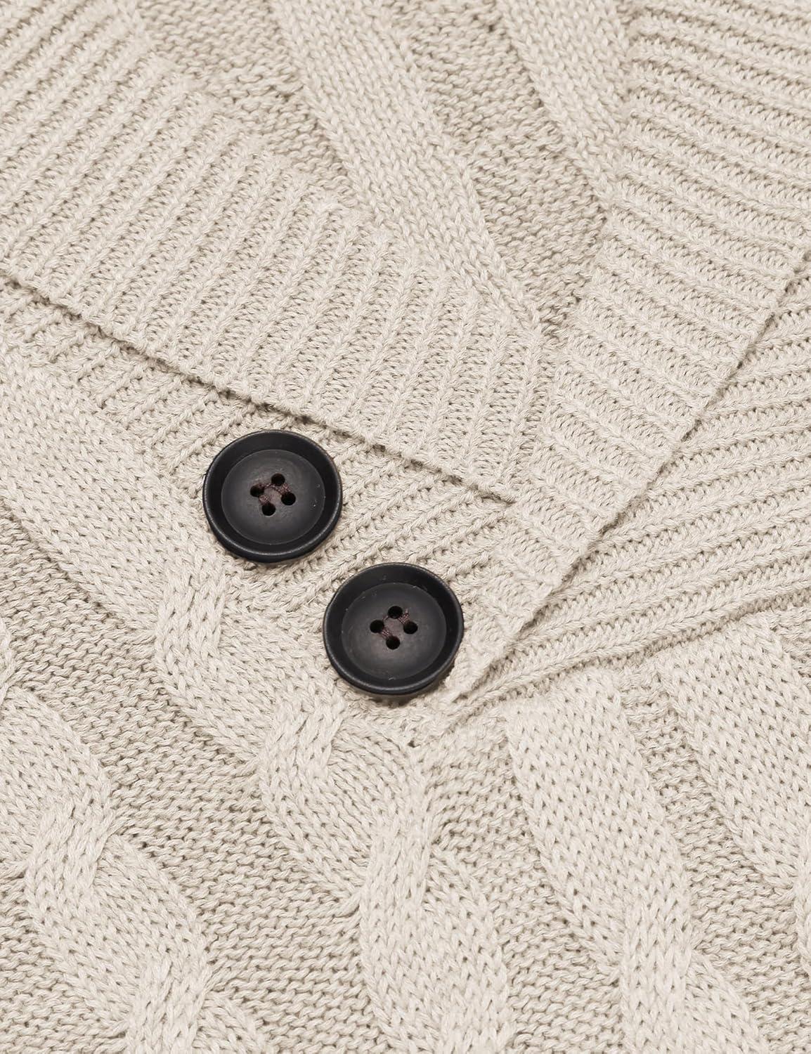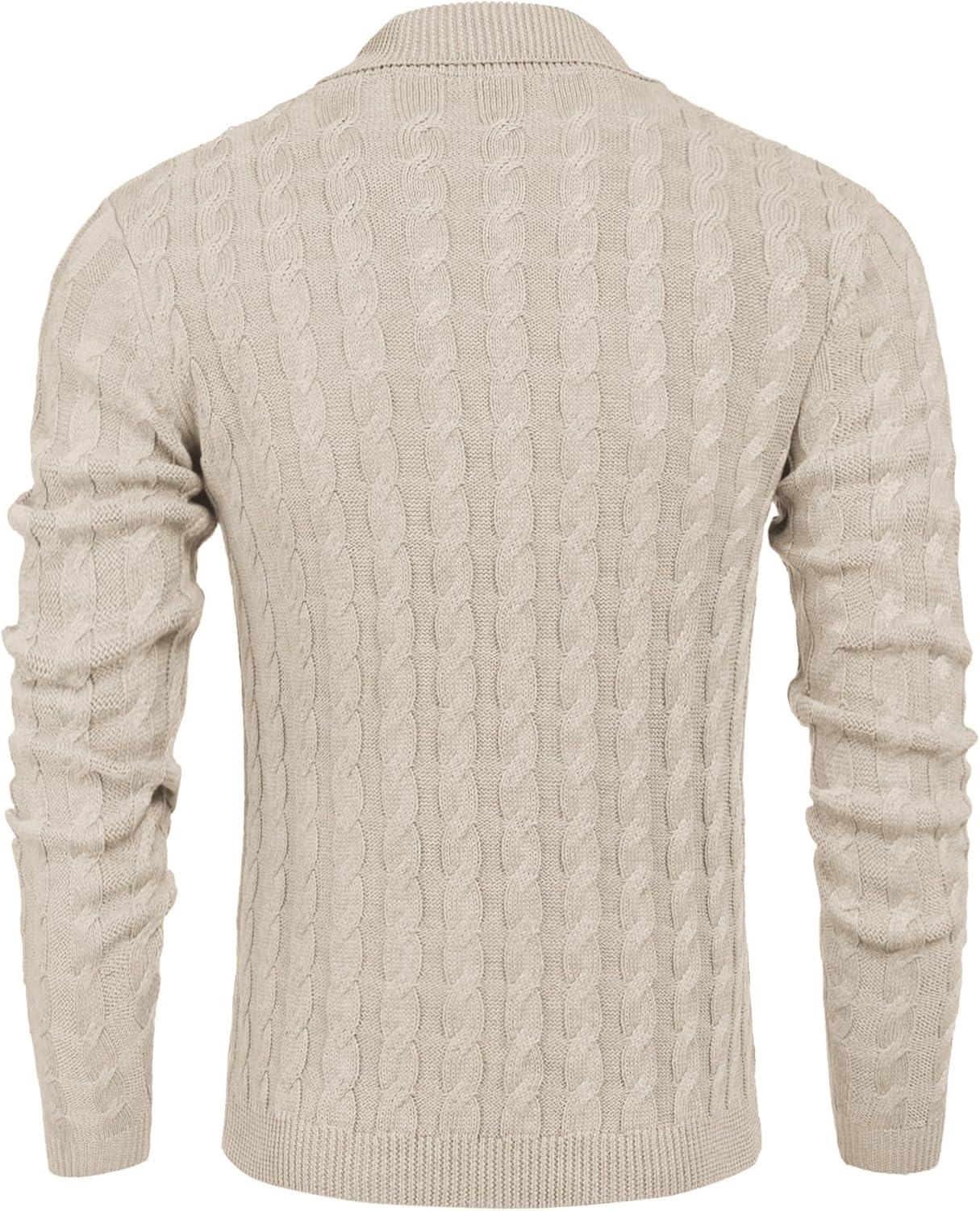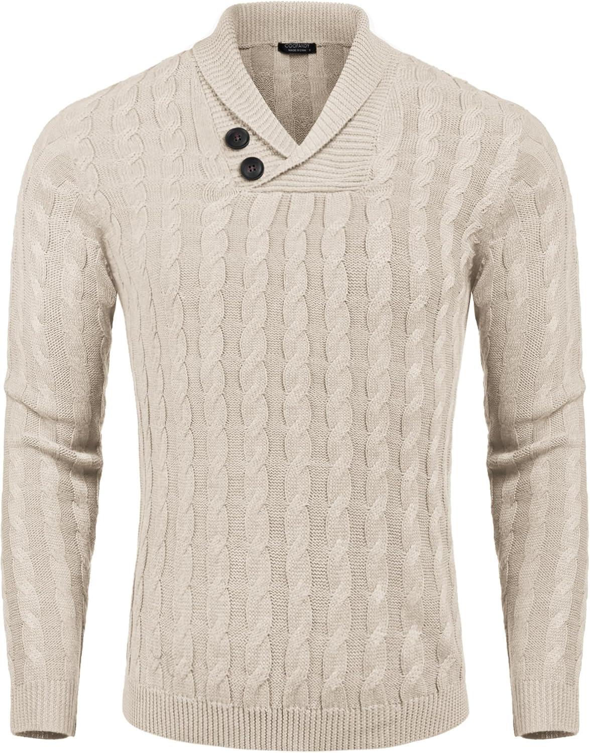COOFANDY Men’s Shawl Collar Pullover Sweater Slim Fit Casual Button Cable Knit Sweaters(Beige)
