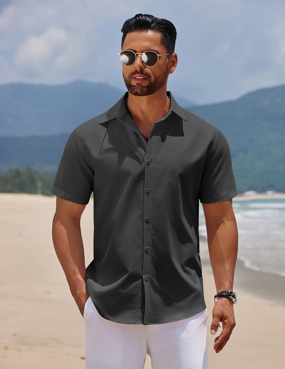 Get your hands on our exclusive COOFANDY Men’s Short Sleeve Button Down Casual Shirts for Men Summer Untucked Shirts(Black) collection, now at a discounted price.