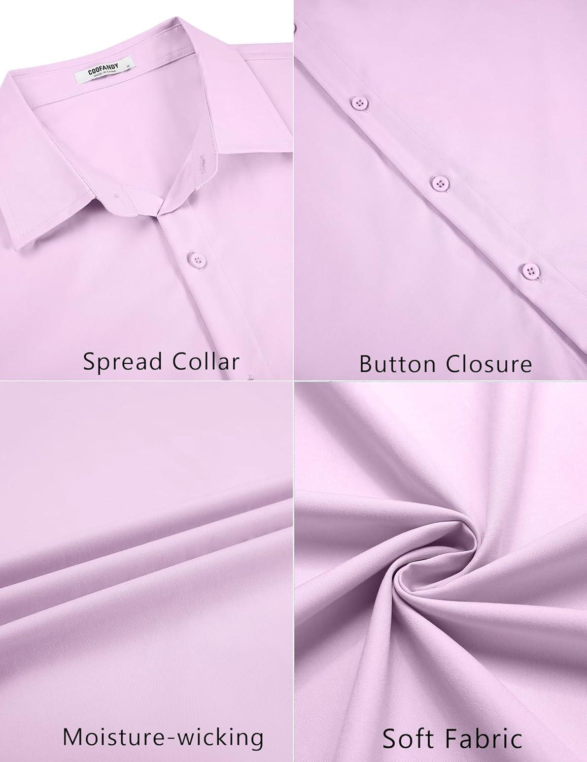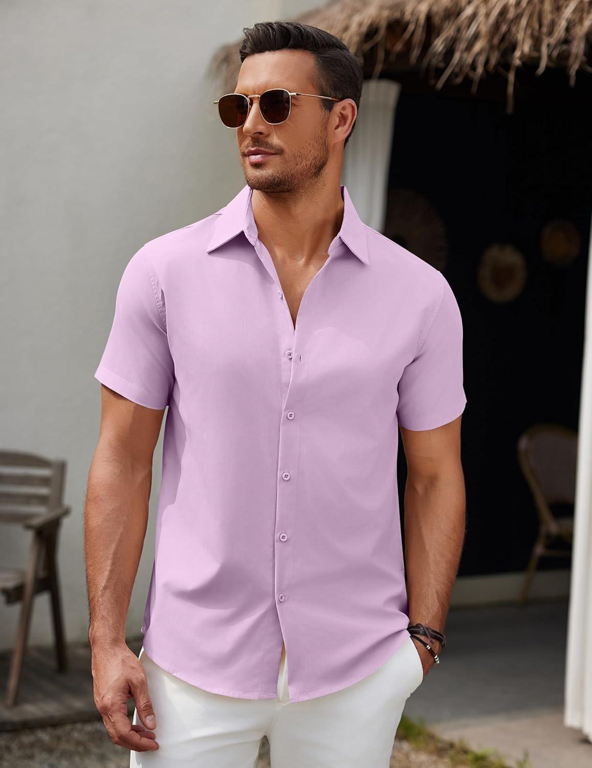 COOFANDY Men’s Short Sleeve Button Down Casual Shirts for Men Summer Untucked Shirts(Lavender Frost)