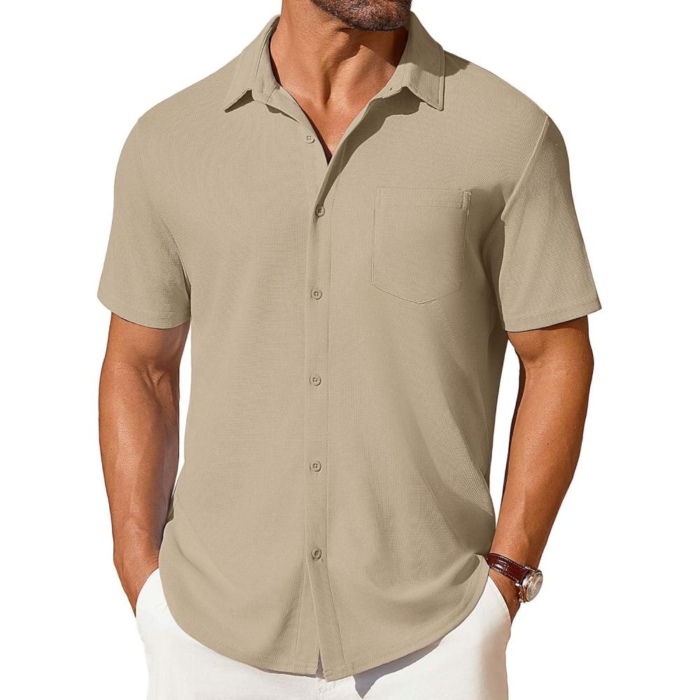 COOFANDY Men’s Short Sleeve Button Down Shirt Casual Summer Beach Shirt Waffle Knit Shirts Wrinkle Free Untucked Shirt(Khaki)