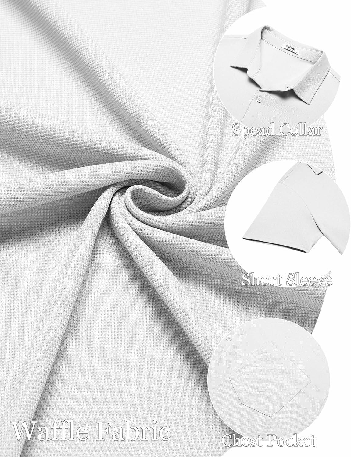 COOFANDY Men’s Short Sleeve Button Down Shirt Casual Summer Beach Shirt Waffle Knit Shirts Wrinkle Free Untucked Shirt(White)