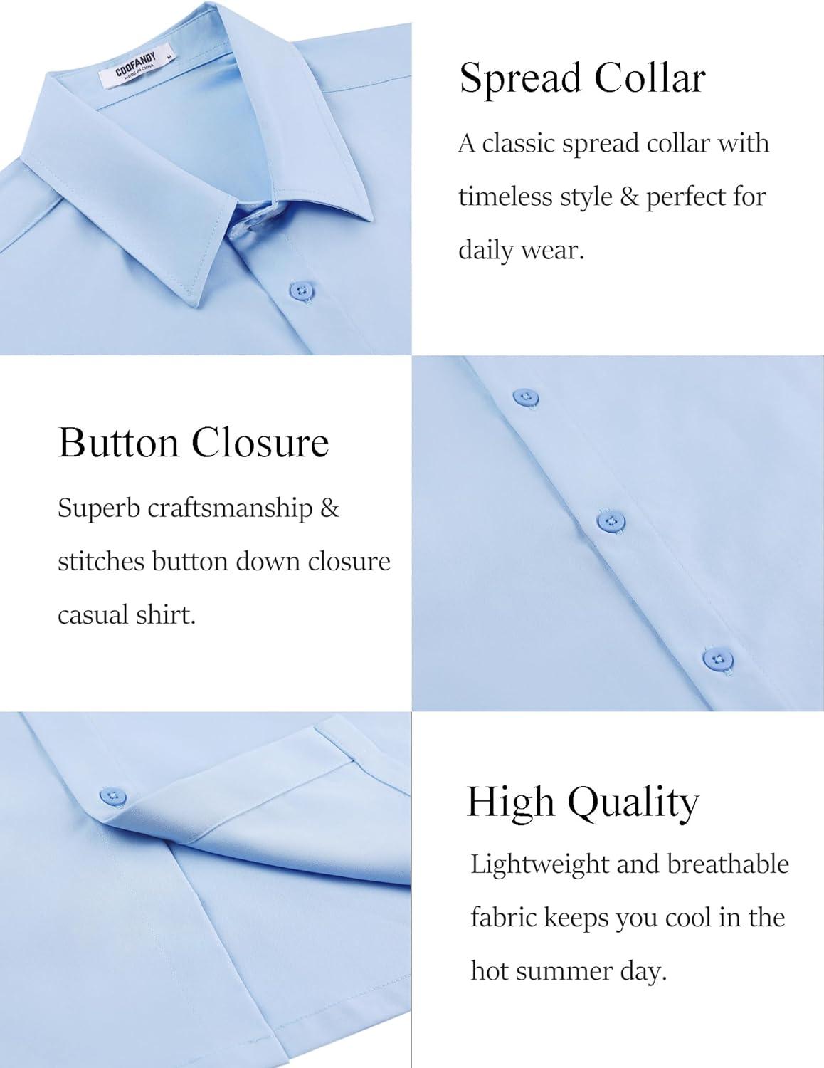 COOFANDY Mens Short Sleeve Button Down Shirt Lightweight Wrinkle Free Untucked Dress Shirts(Clear Blue)
