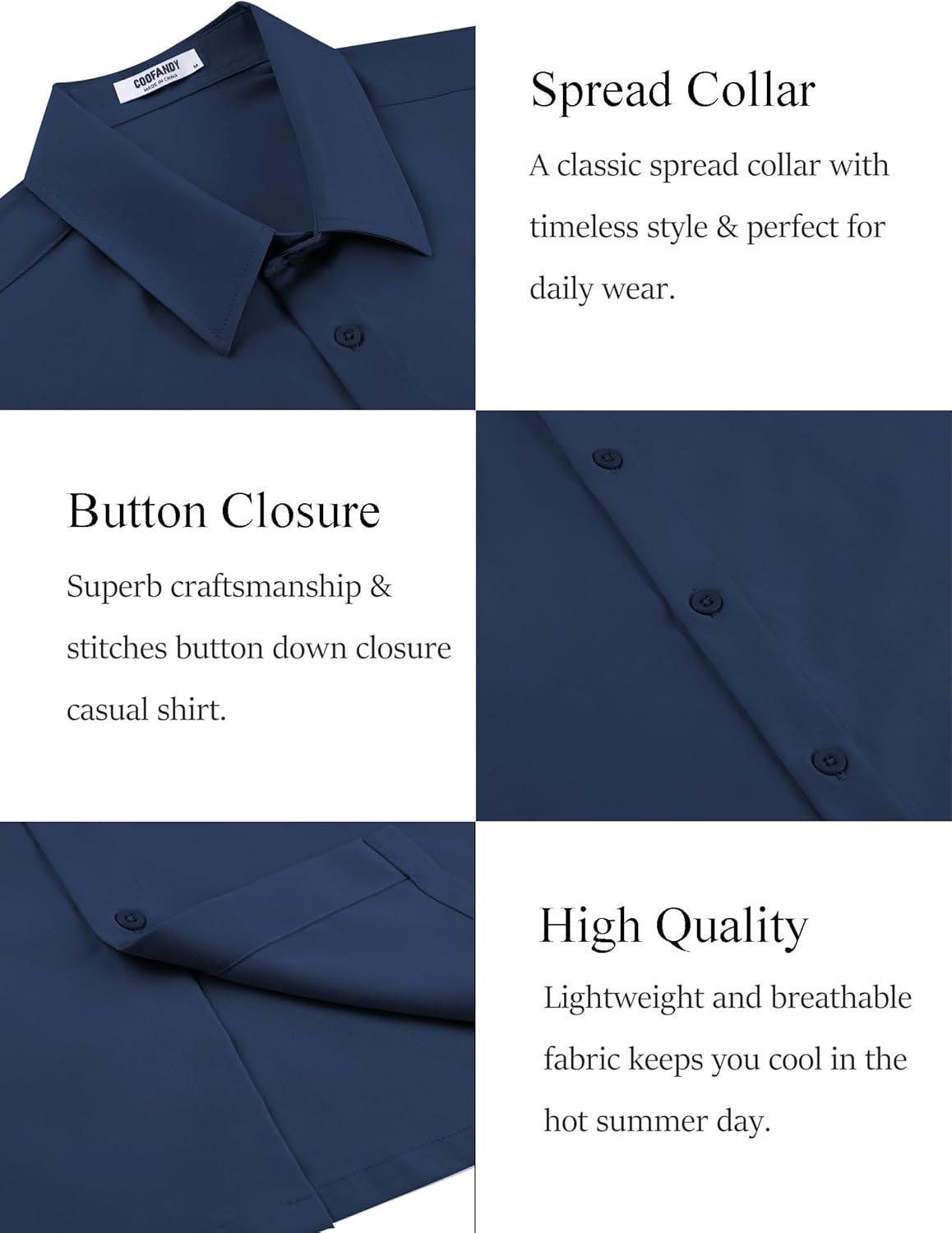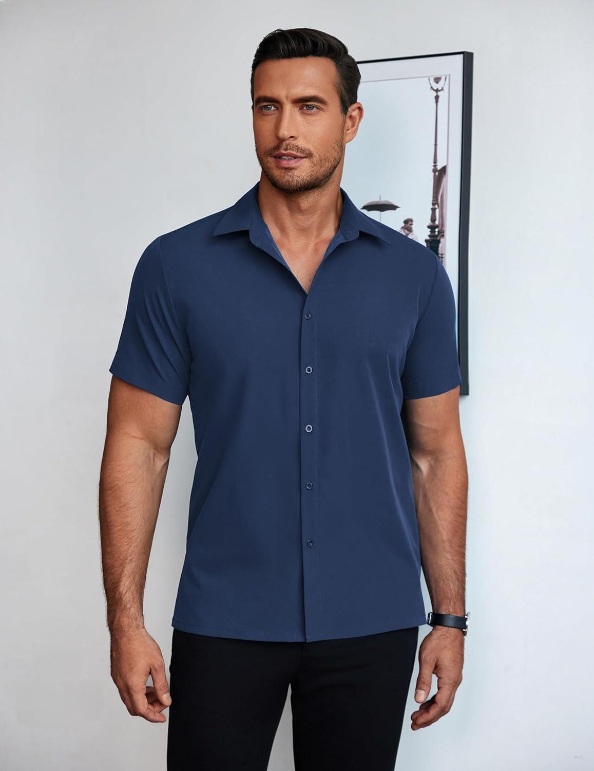 COOFANDY Mens Short Sleeve Button Down Shirt Lightweight Wrinkle Free Untucked Dress Shirts(Navy Blue)