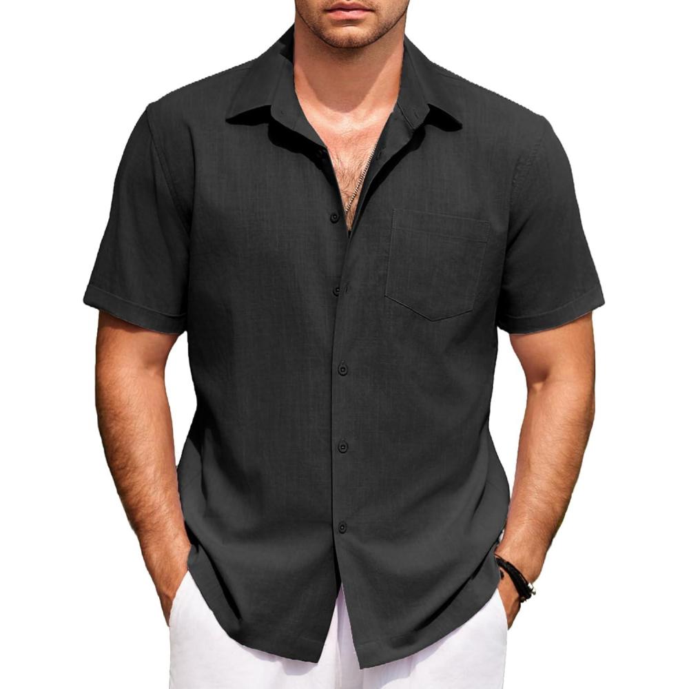 COOFANDY Mens Short Sleeve Button Down Shirts 100% Cotton Beach Style Textured Shirts(Black)