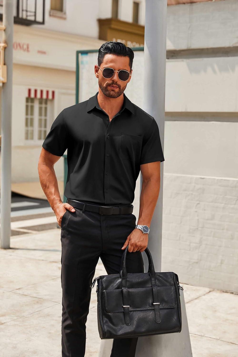 COOFANDY Mens Short Sleeve Button Down Shirts Casual Dress Shirts for Men Summer Untucked Shirts with Pocket(Black)