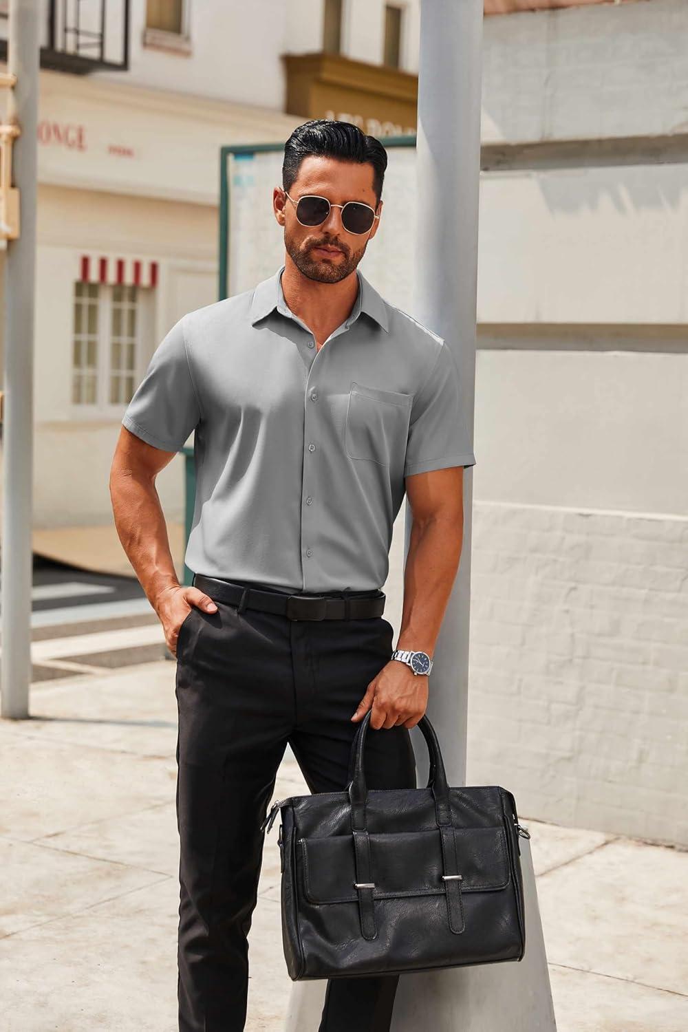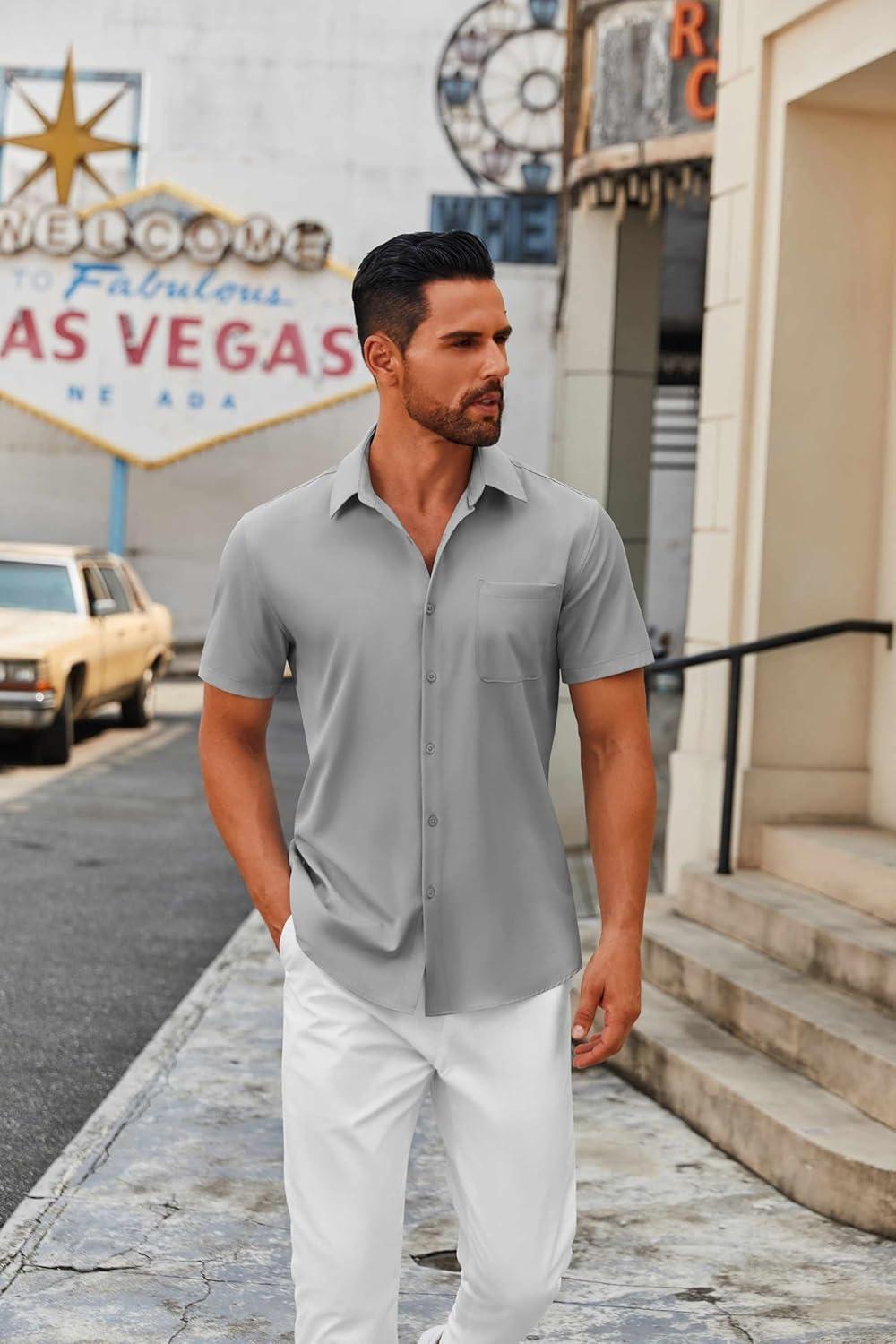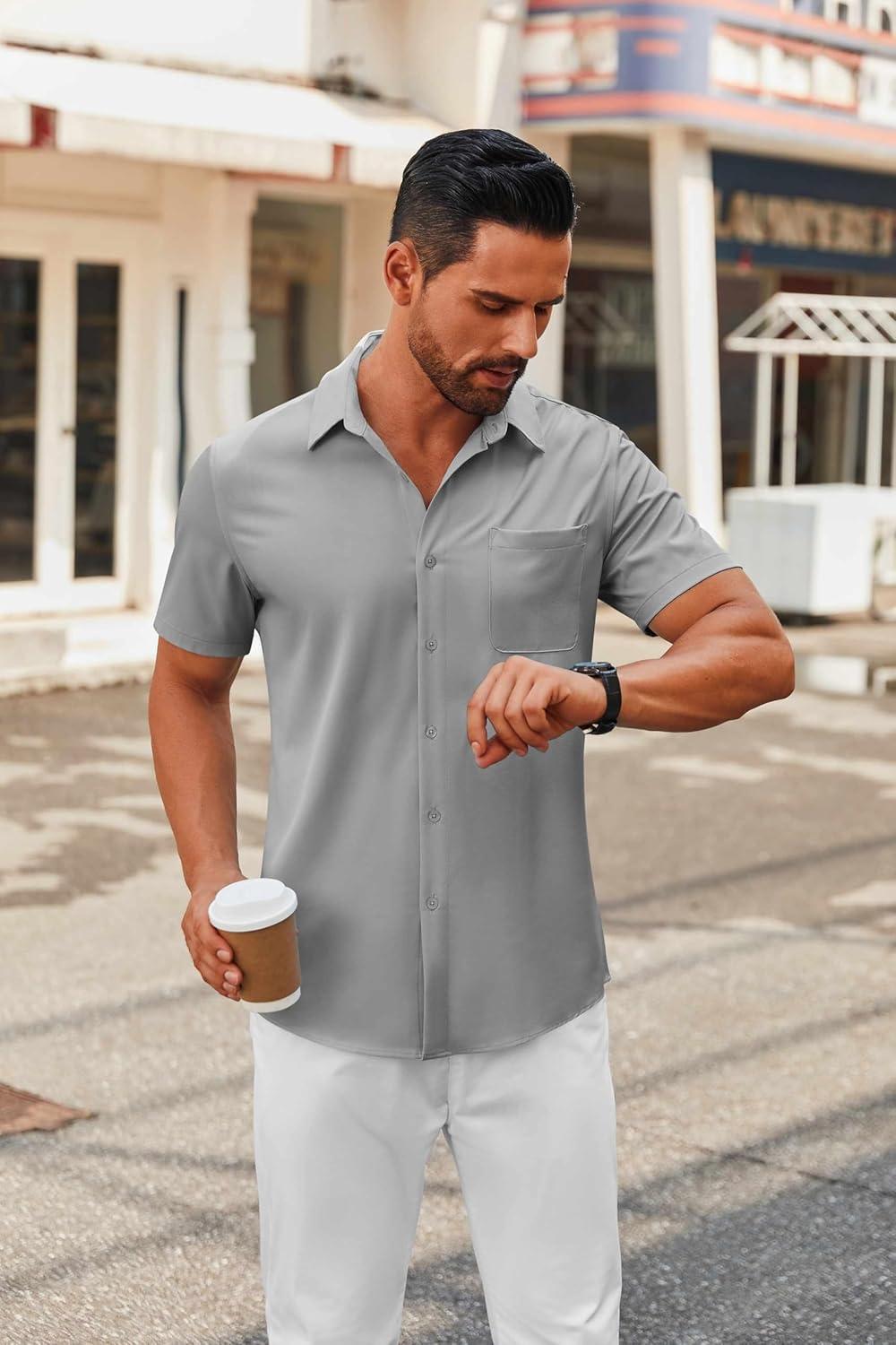 COOFANDY Mens Short Sleeve Button Down Shirts Casual Dress Shirts for Men Summer Untucked Shirts with Pocket(Light Gray)