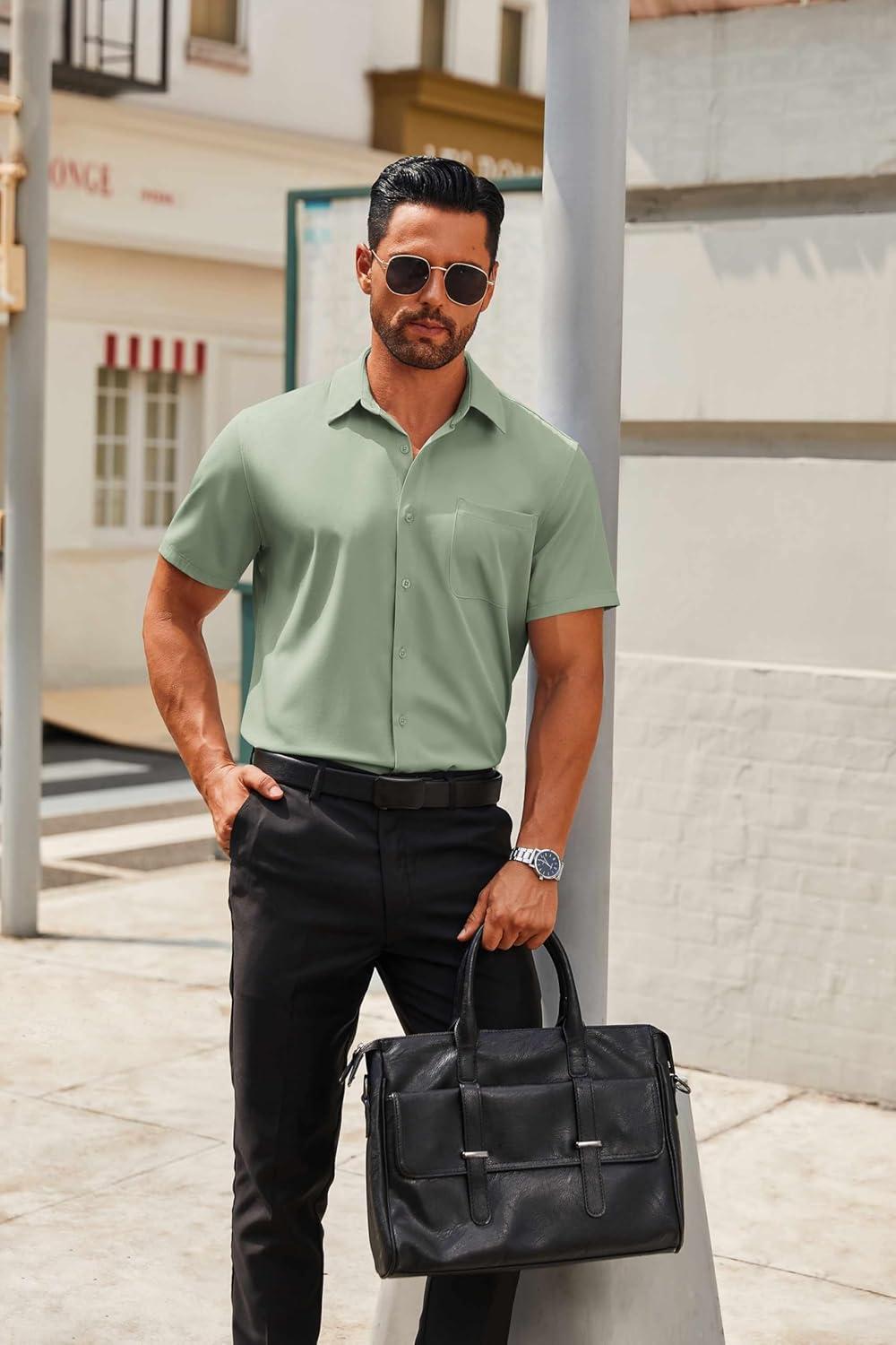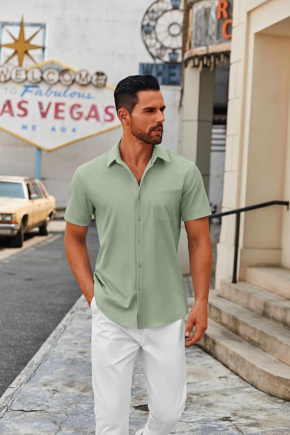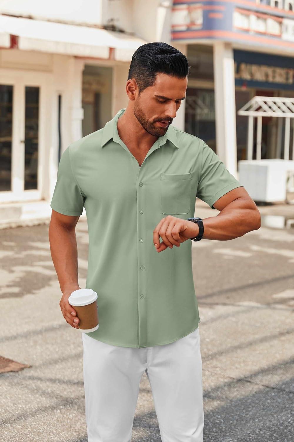 COOFANDY Mens Short Sleeve Button Down Shirts Casual Dress Shirts for Men Summer Untucked Shirts with Pocket(Light Green)