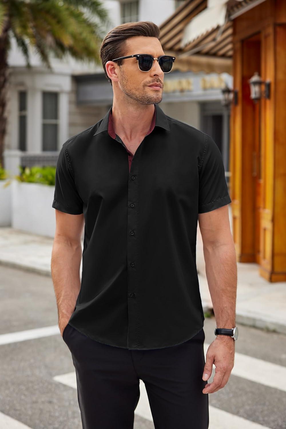 COOFANDY Men’s Short Sleeve Button Down Shirts Casual Summer Dress Untucked Shirts(Black)