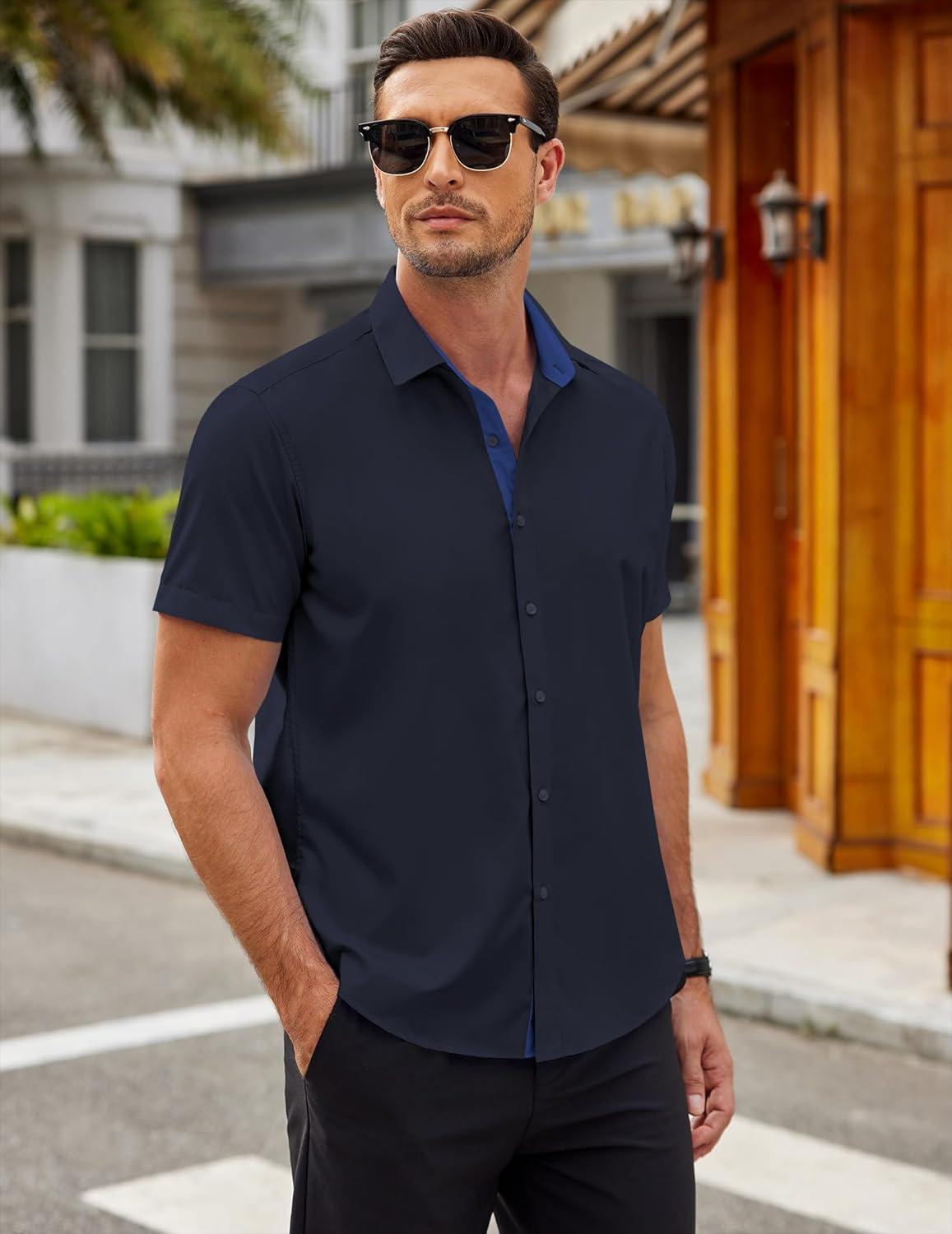 COOFANDY Men’s Short Sleeve Button Down Shirts Casual Summer Dress Untucked Shirts(Deep Blue)
