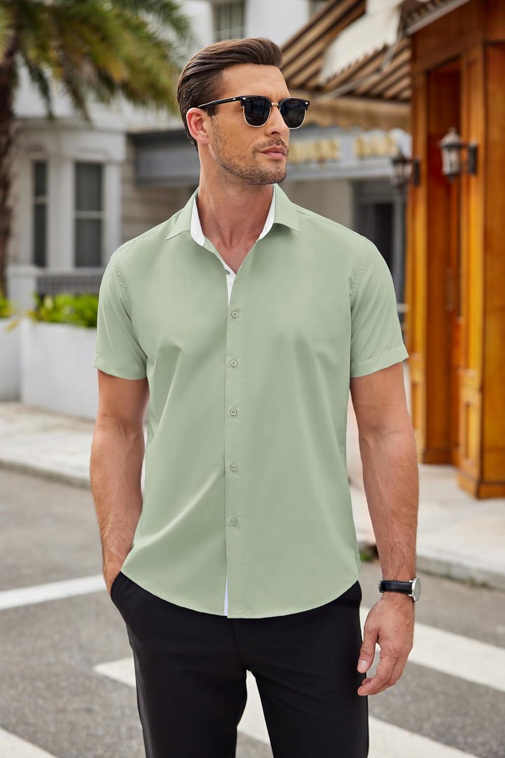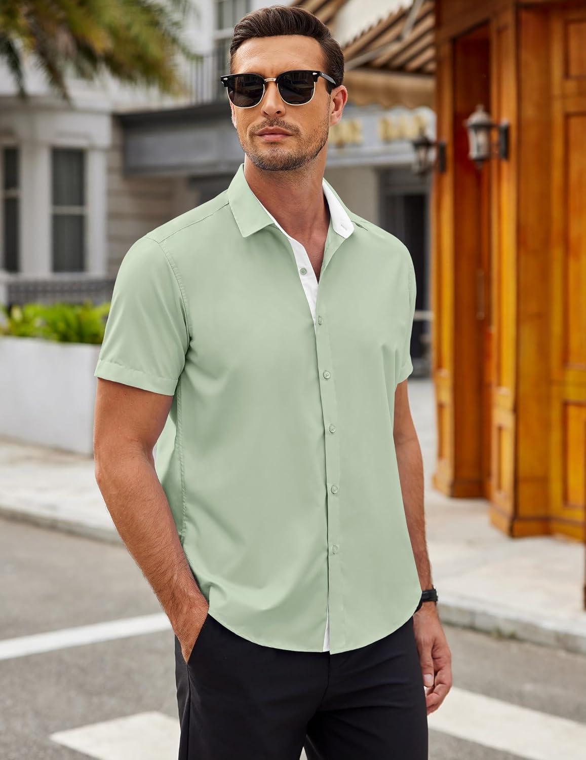 COOFANDY Men’s Short Sleeve Button Down Shirts Casual Summer Dress Untucked Shirts(Light Green)