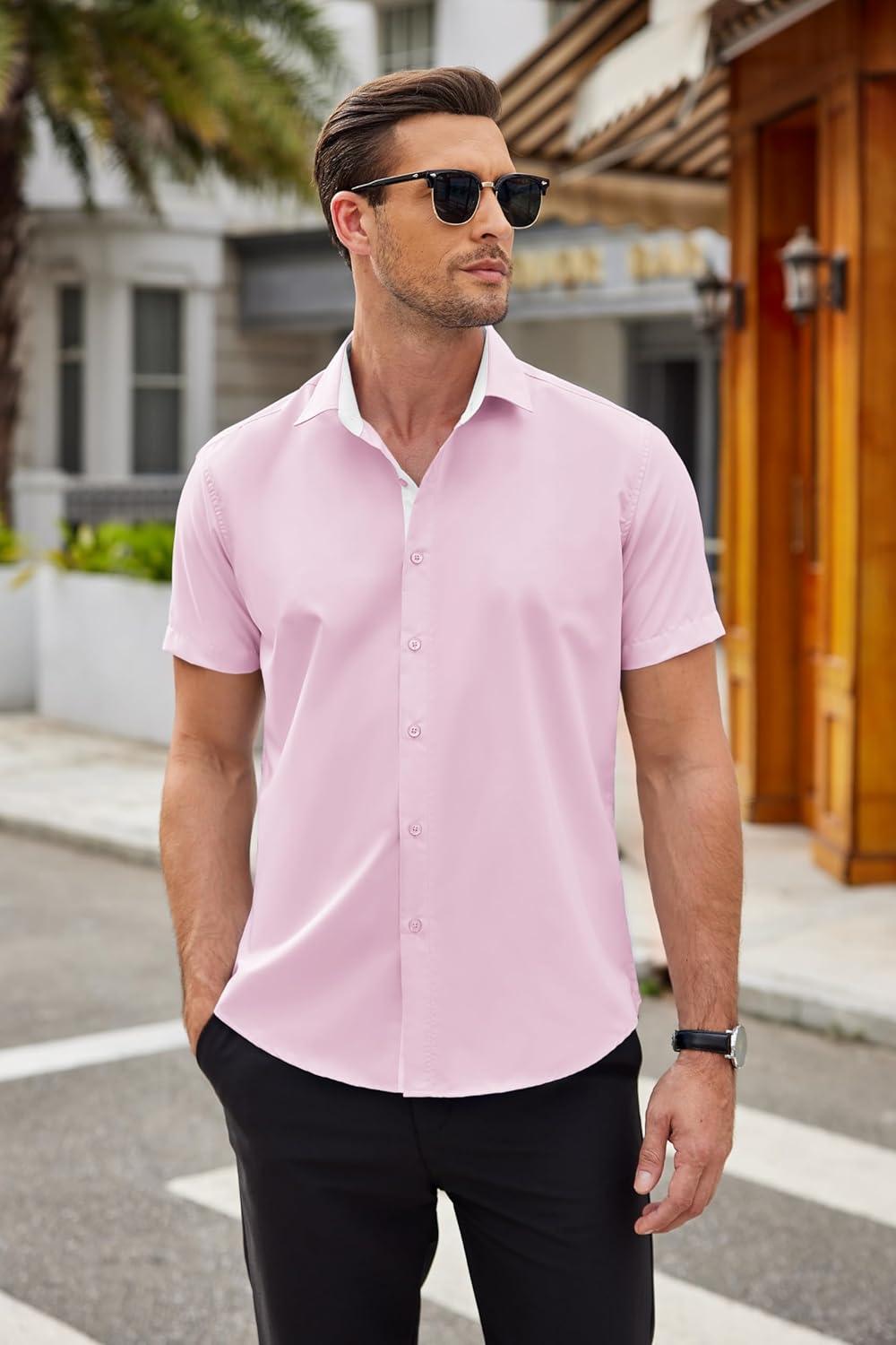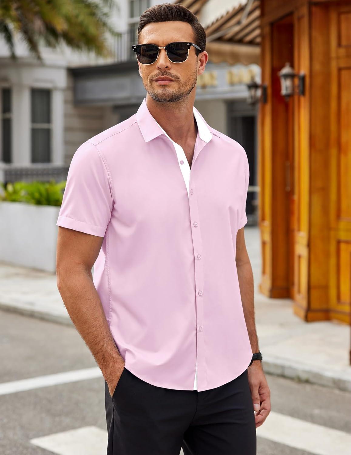 COOFANDY Men’s Short Sleeve Button Down Shirts Casual Summer Dress Untucked Shirts(Light Pink)