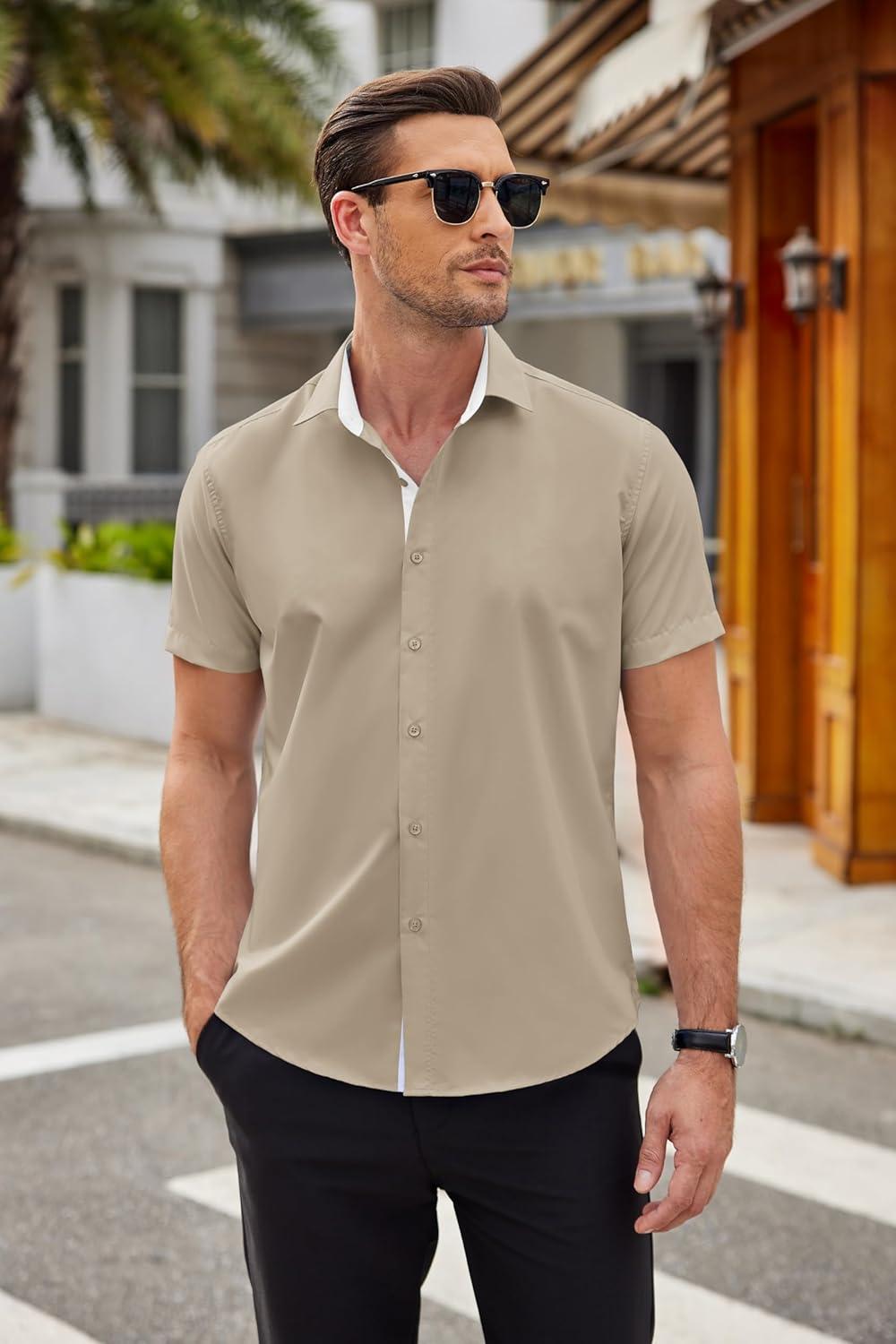 COOFANDY Men’s Short Sleeve Button Down Shirts Casual Summer Dress Untucked Shirts(Moon Grey)