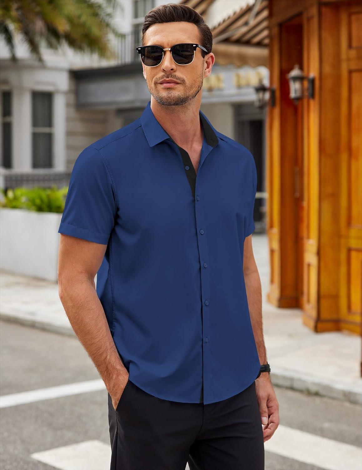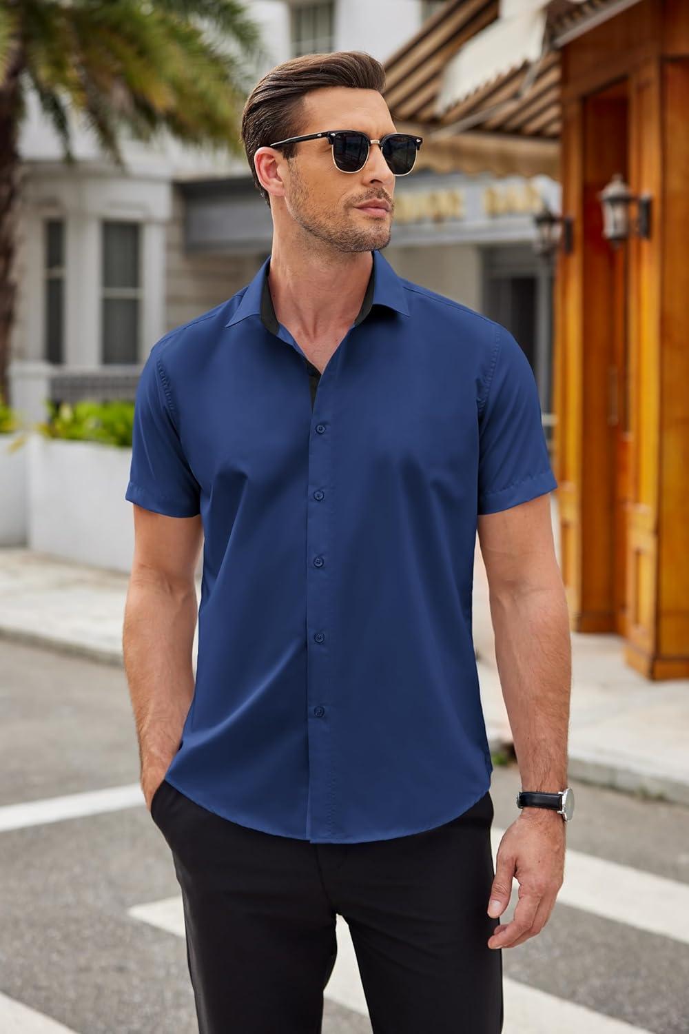 COOFANDY Men’s Short Sleeve Button Down Shirts Casual Summer Dress Untucked Shirts(Navy Blue)