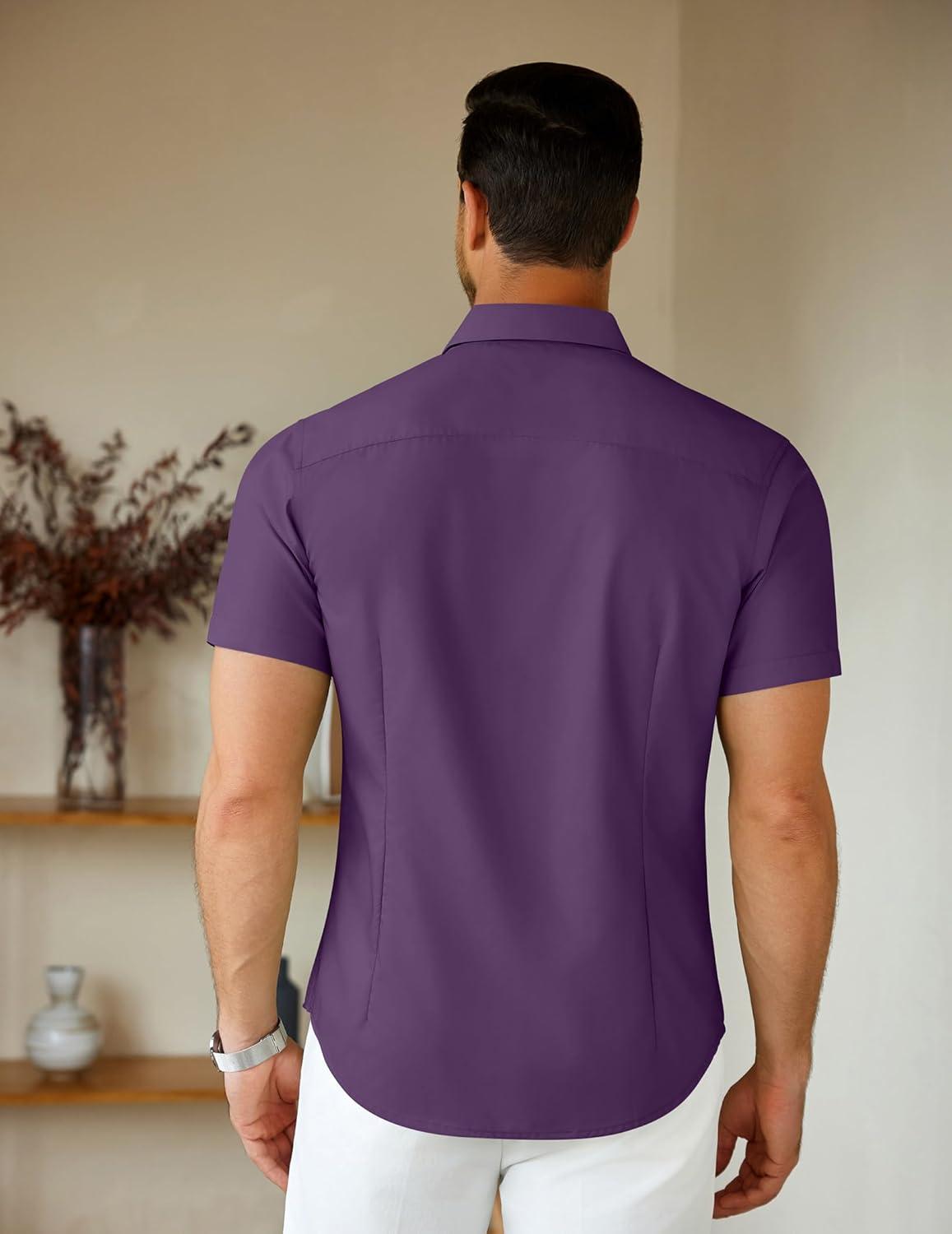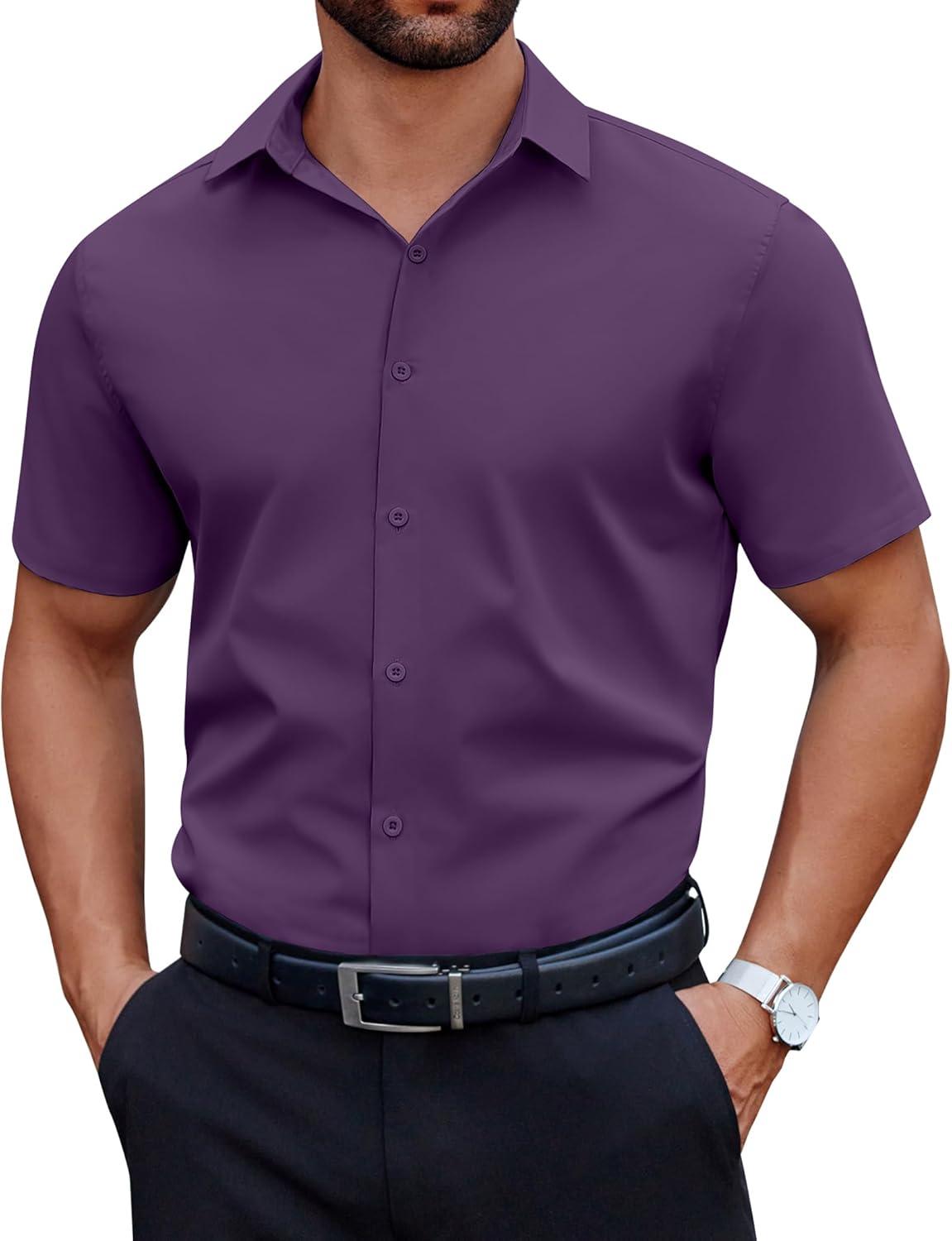 COOFANDY Men’s Short Sleeve Dress Shirts Casual Button Down Wrinkle Free Regular Fit Business Untucked Shirts(Crown Jewel)