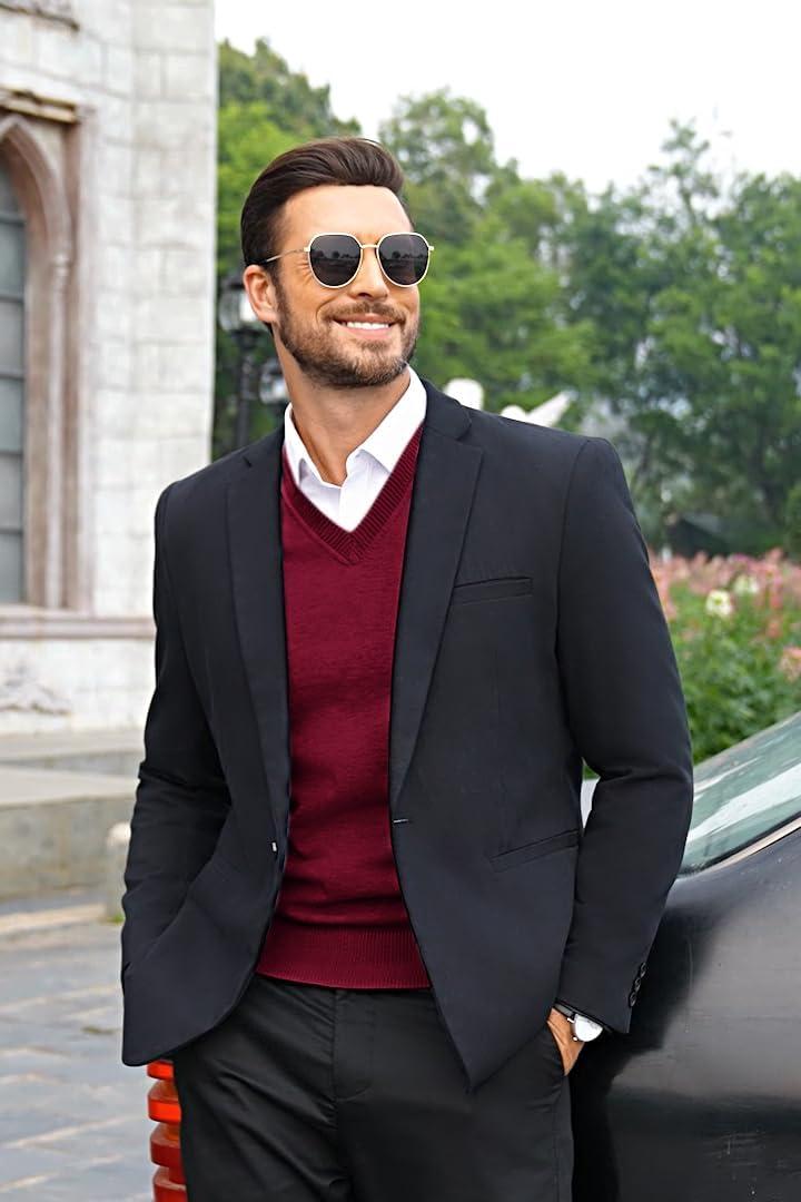 COOFANDY Men’s Sleeveless Sweater Vest Lightweight V-Neck Cotton Vest Pullover(1 Dark Red)