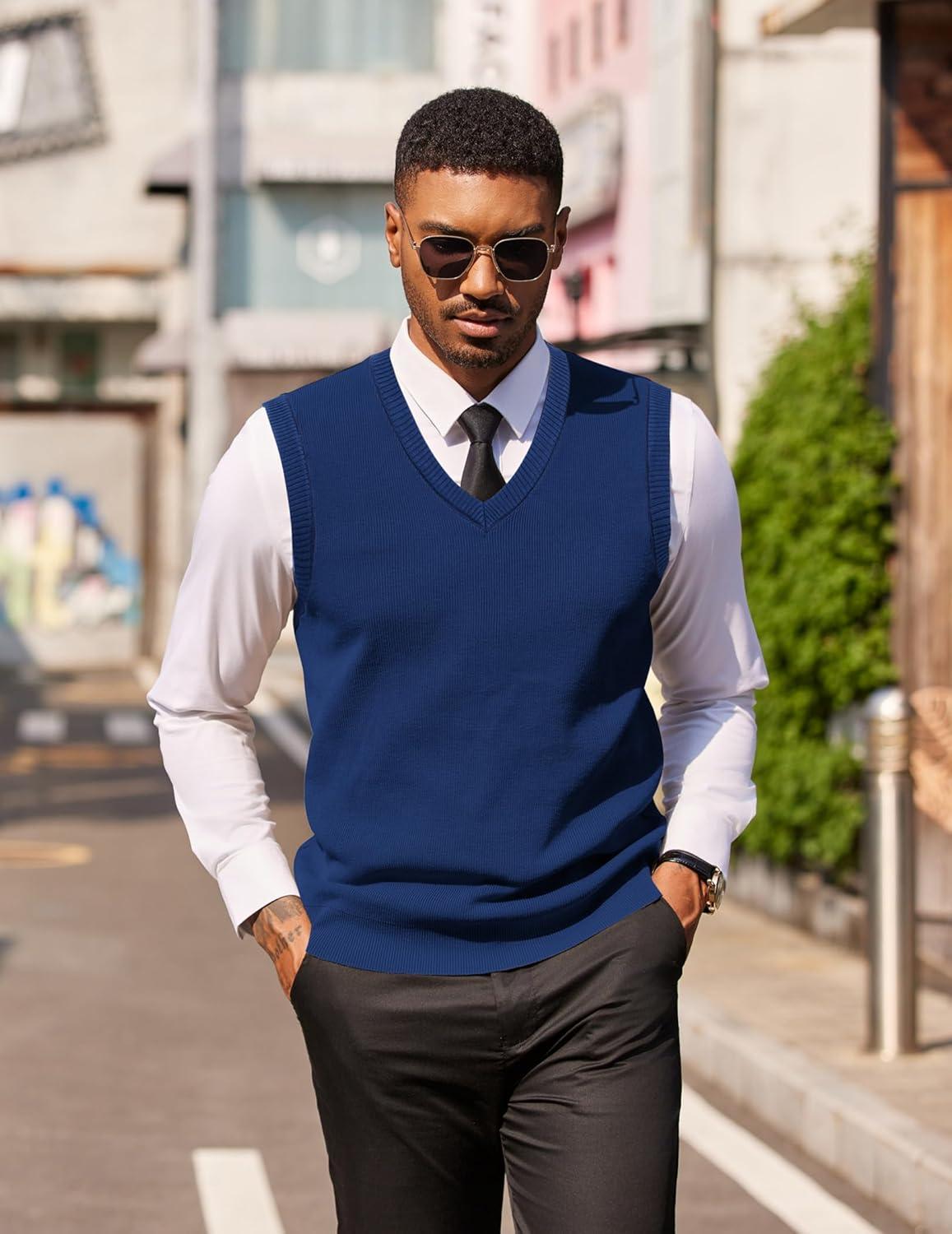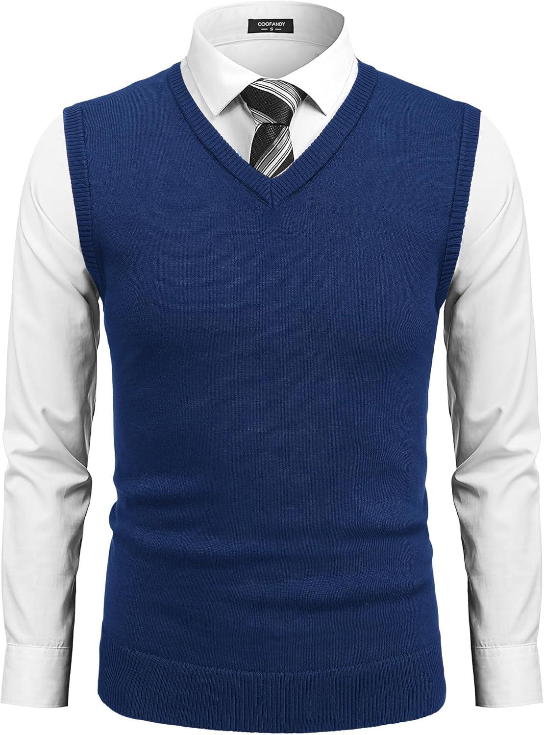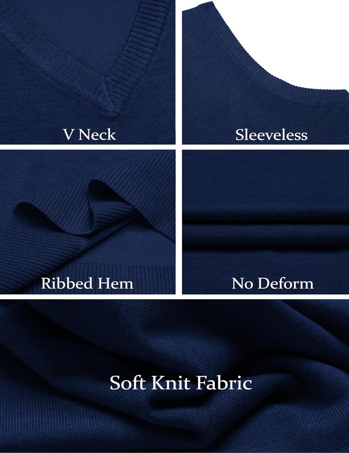 COOFANDY Men’s Sleeveless Sweater Vest Lightweight V-Neck Cotton Vest Pullover(Denim Blue)