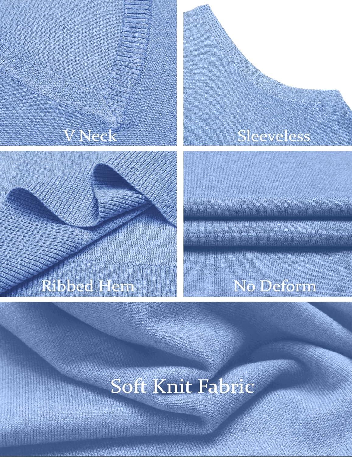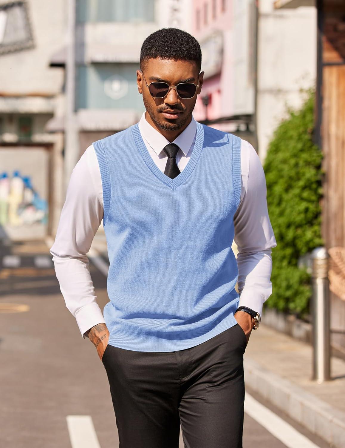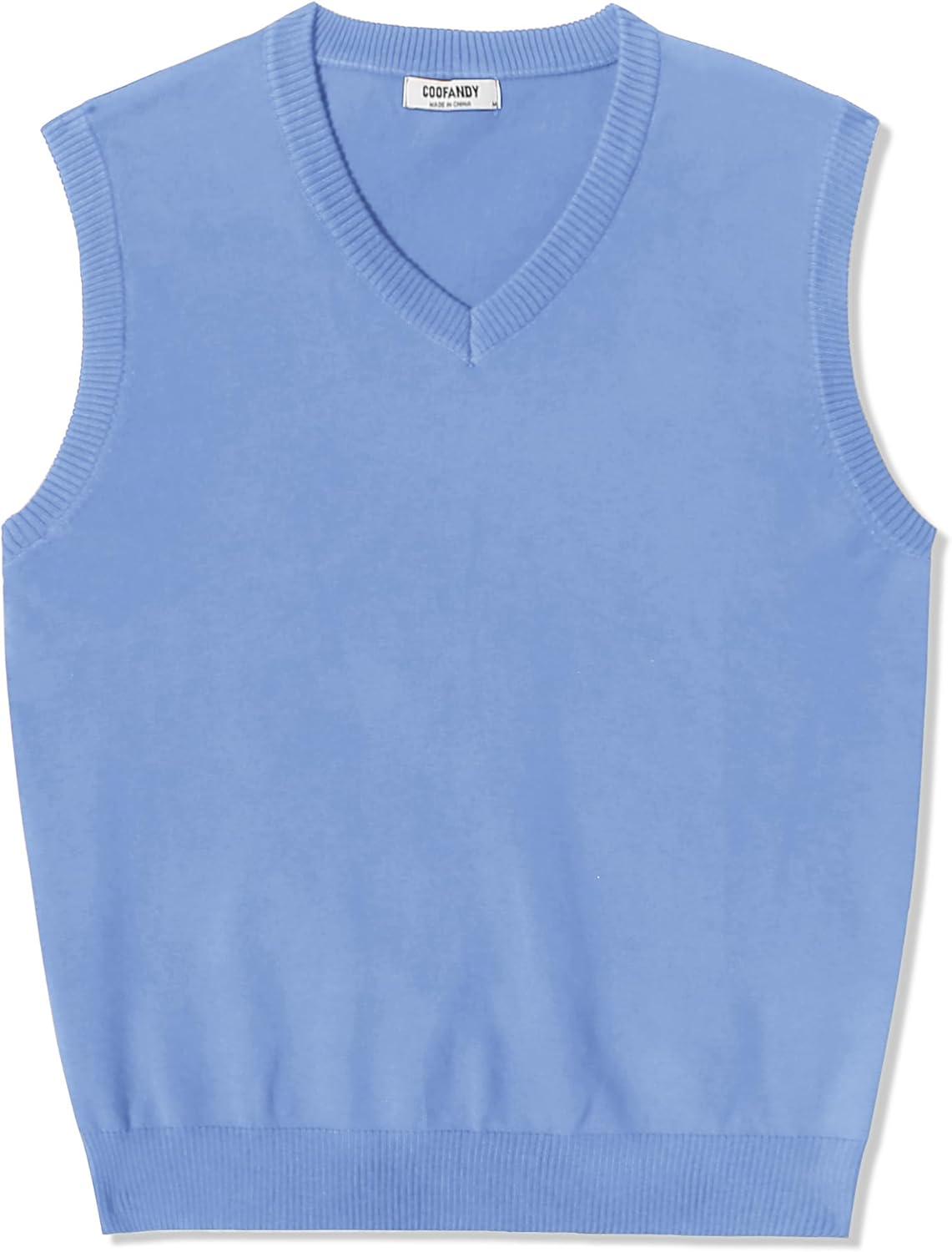 COOFANDY Men’s Sleeveless Sweater Vest Lightweight V-Neck Cotton Vest Pullover(Light Blue)