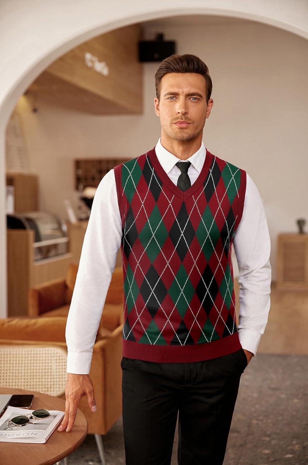 COOFANDY Men’s Sleeveless V Neck Pullover Sweater Slim Fit Casual Argyle Sweater Vest(Gw346 Red and Black Plaid)
