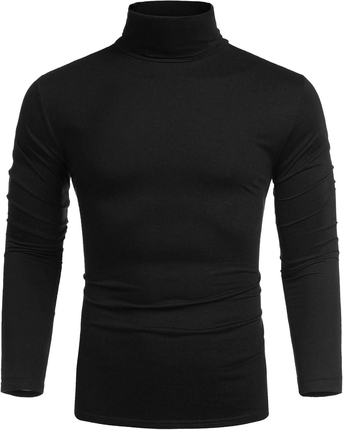 COOFANDY Men’s Slim Fit Turtleneck Cotton T Shirts Casual Long Sleeve Lightweight Pullover Sweater Basic Tops(01-black)
