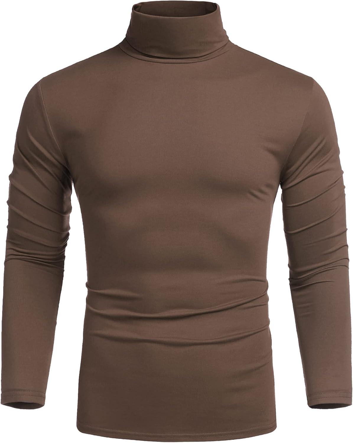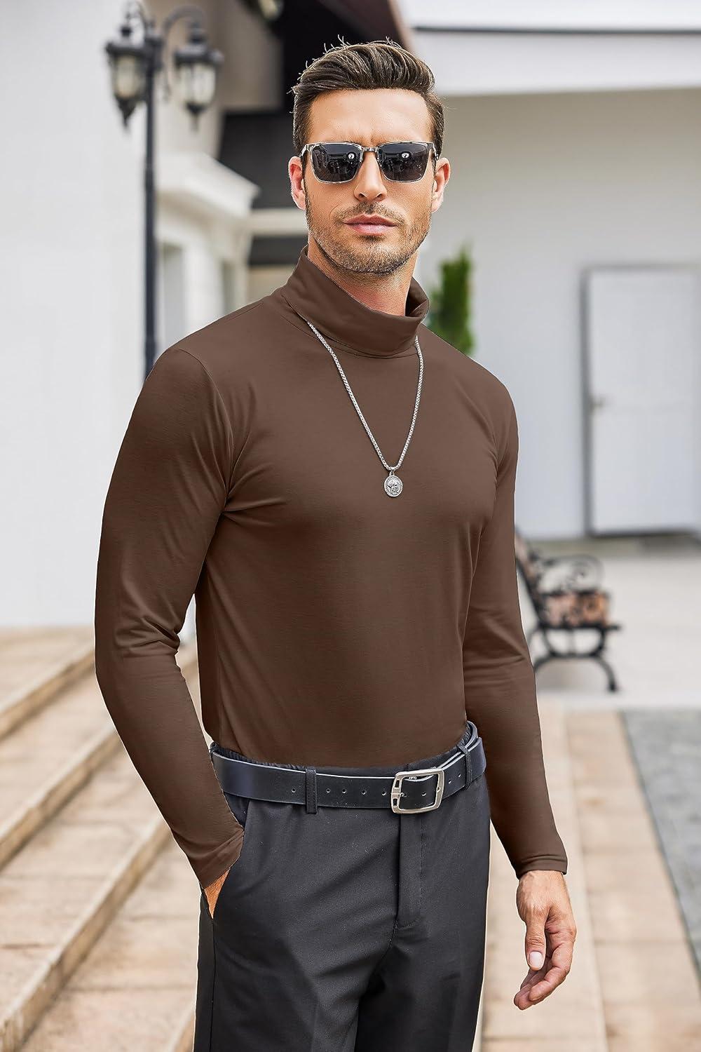 COOFANDY Men’s Slim Fit Turtleneck Cotton T Shirts Casual Long Sleeve Lightweight Pullover Sweater Basic Tops(Brown)