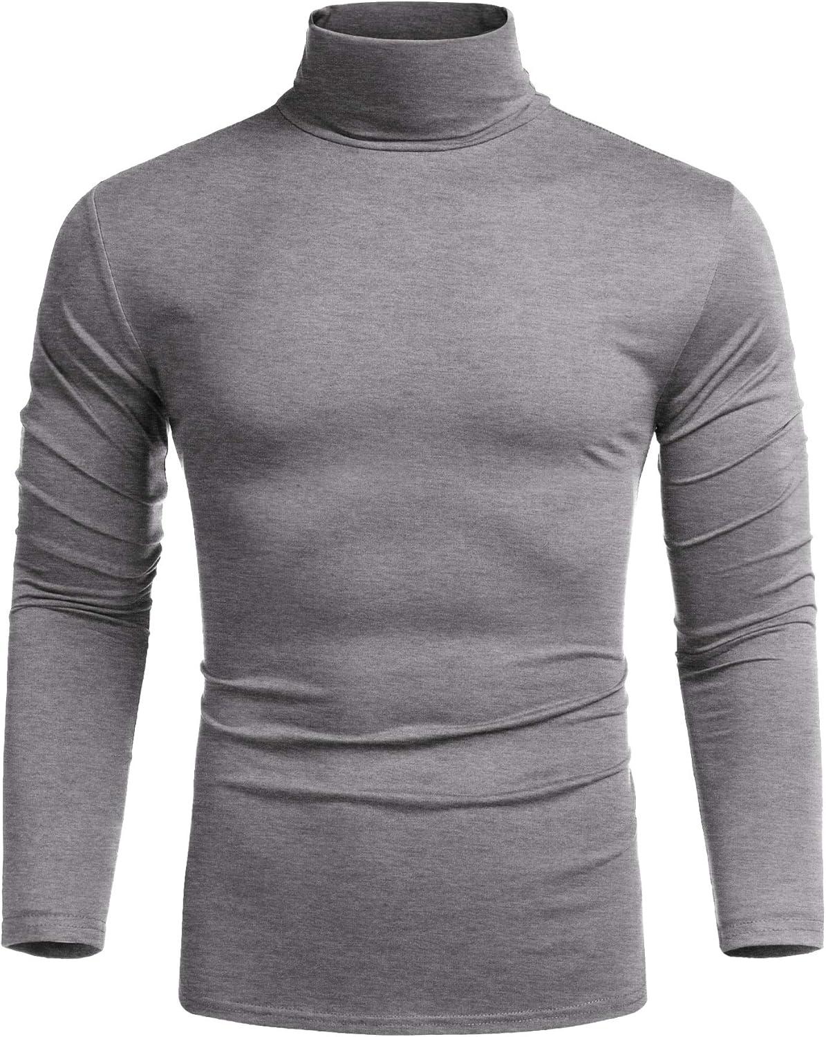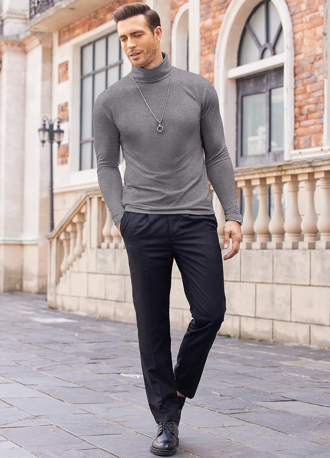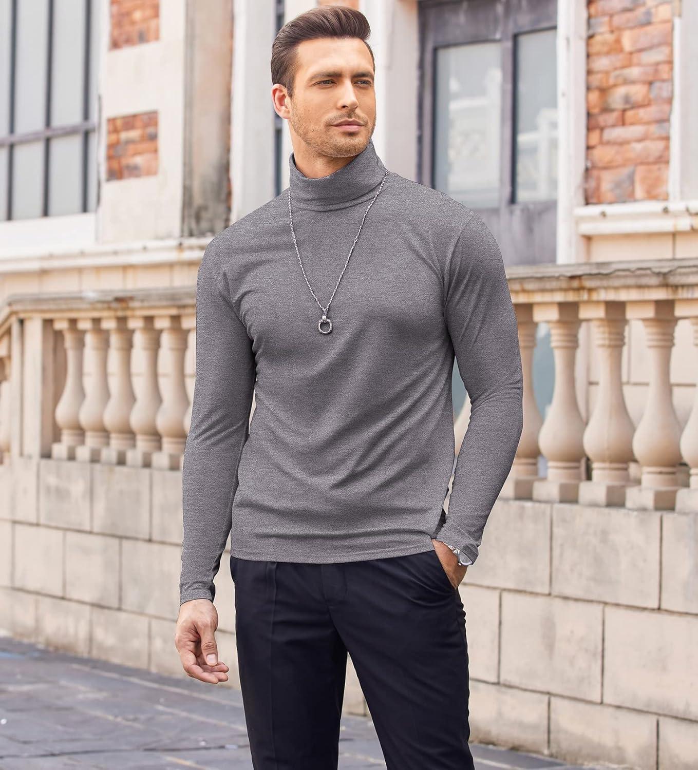 COOFANDY Men’s Slim Fit Turtleneck Cotton T Shirts Casual Long Sleeve Lightweight Pullover Sweater Basic Tops(Grey)