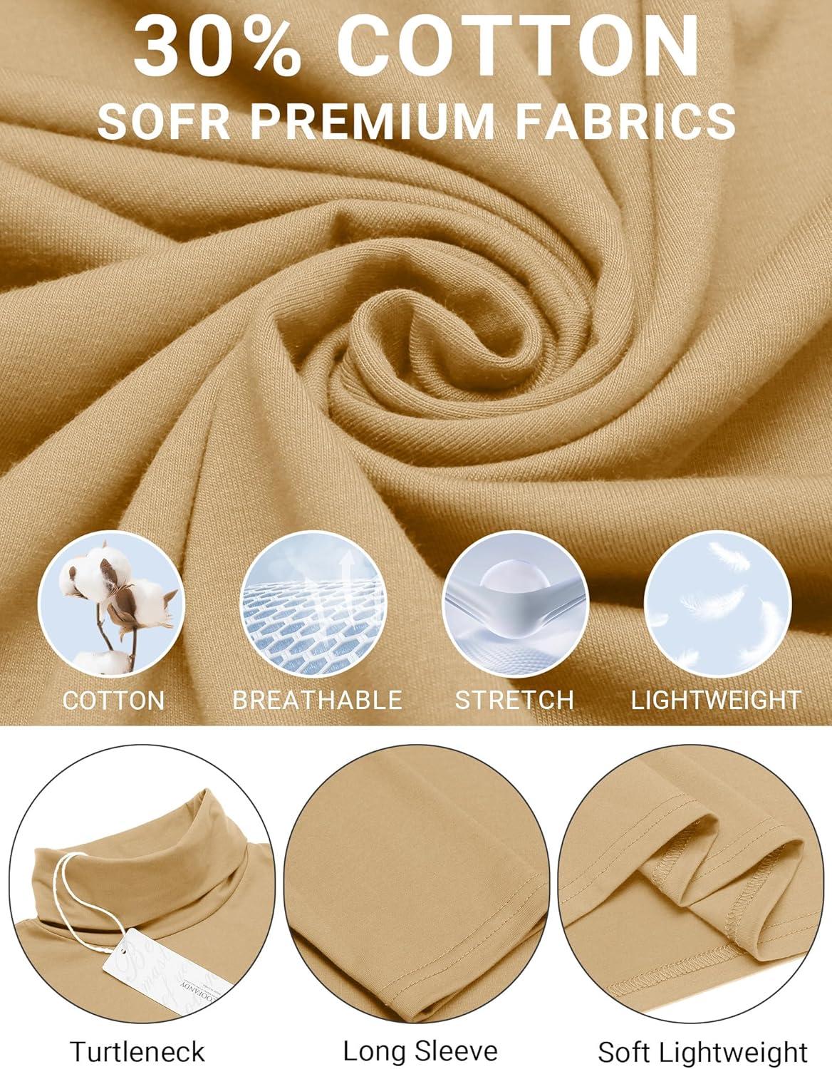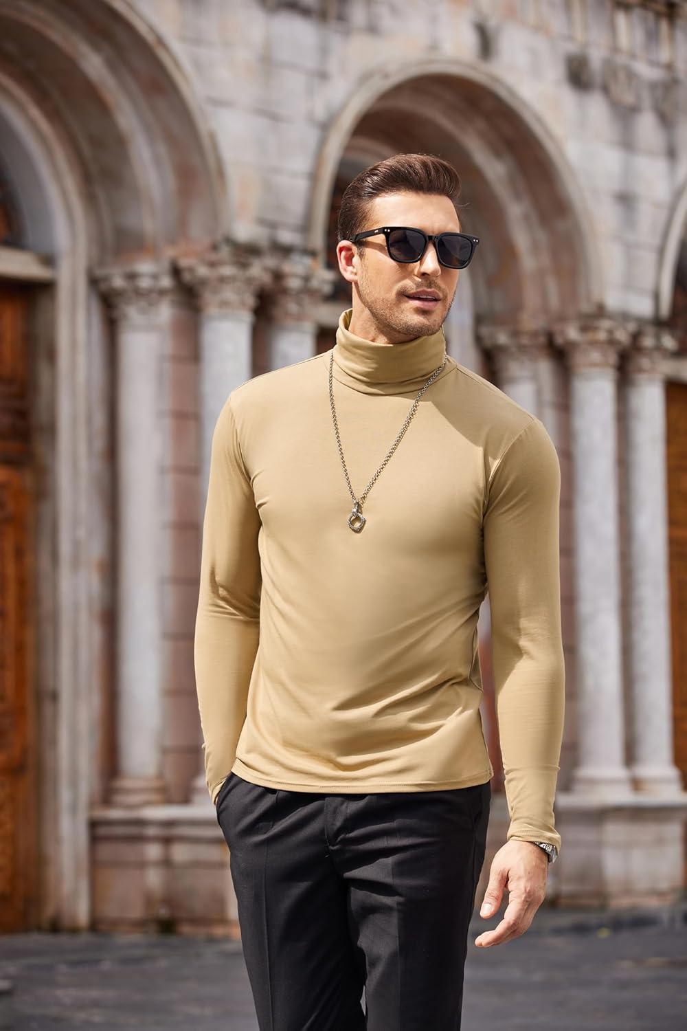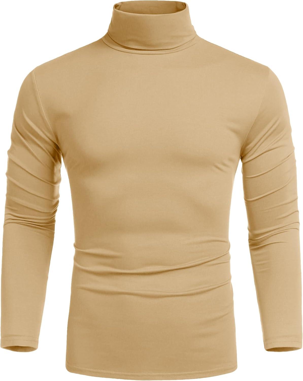 COOFANDY Men’s Slim Fit Turtleneck Cotton T Shirts Casual Long Sleeve Lightweight Pullover Sweater Basic Tops(Khaki)