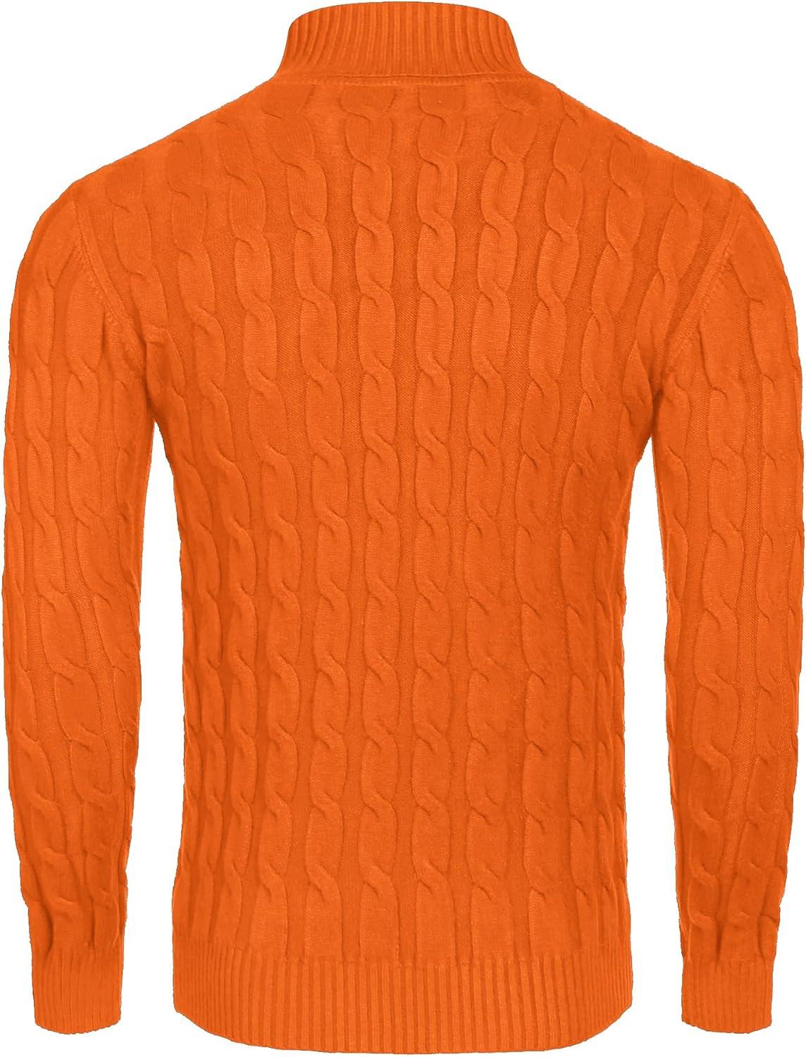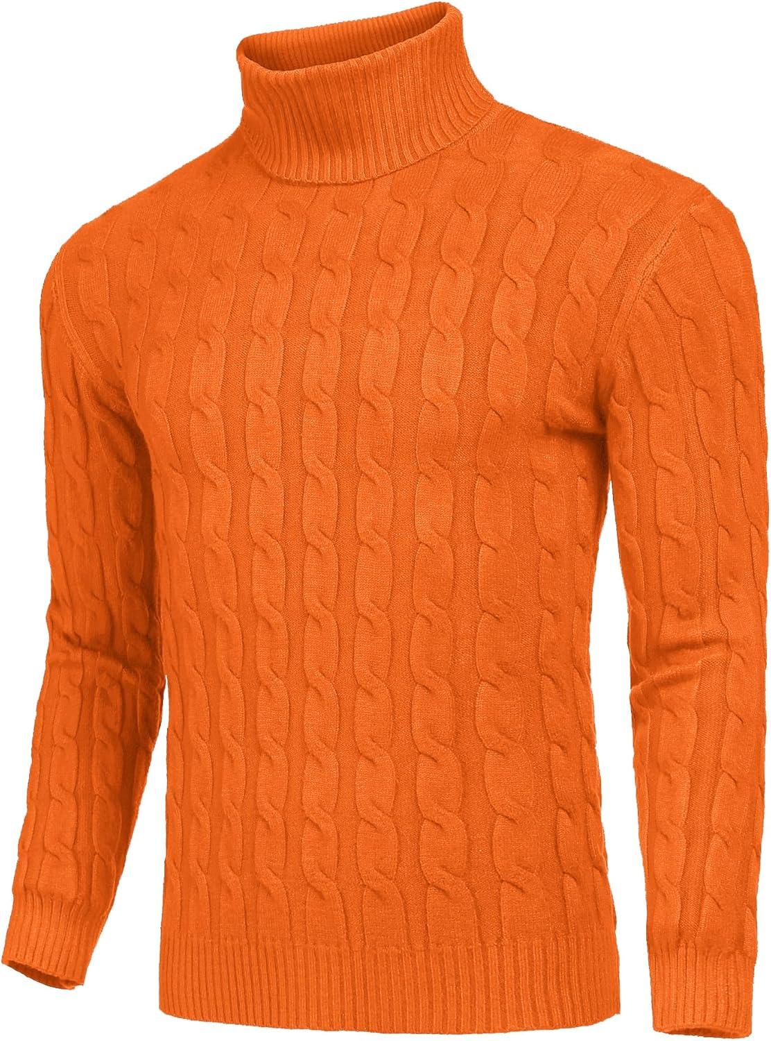 COOFANDY Men’s Slim Fit Turtleneck Sweater Casual Twisted Knitted Pullover Sweaters(Orange)