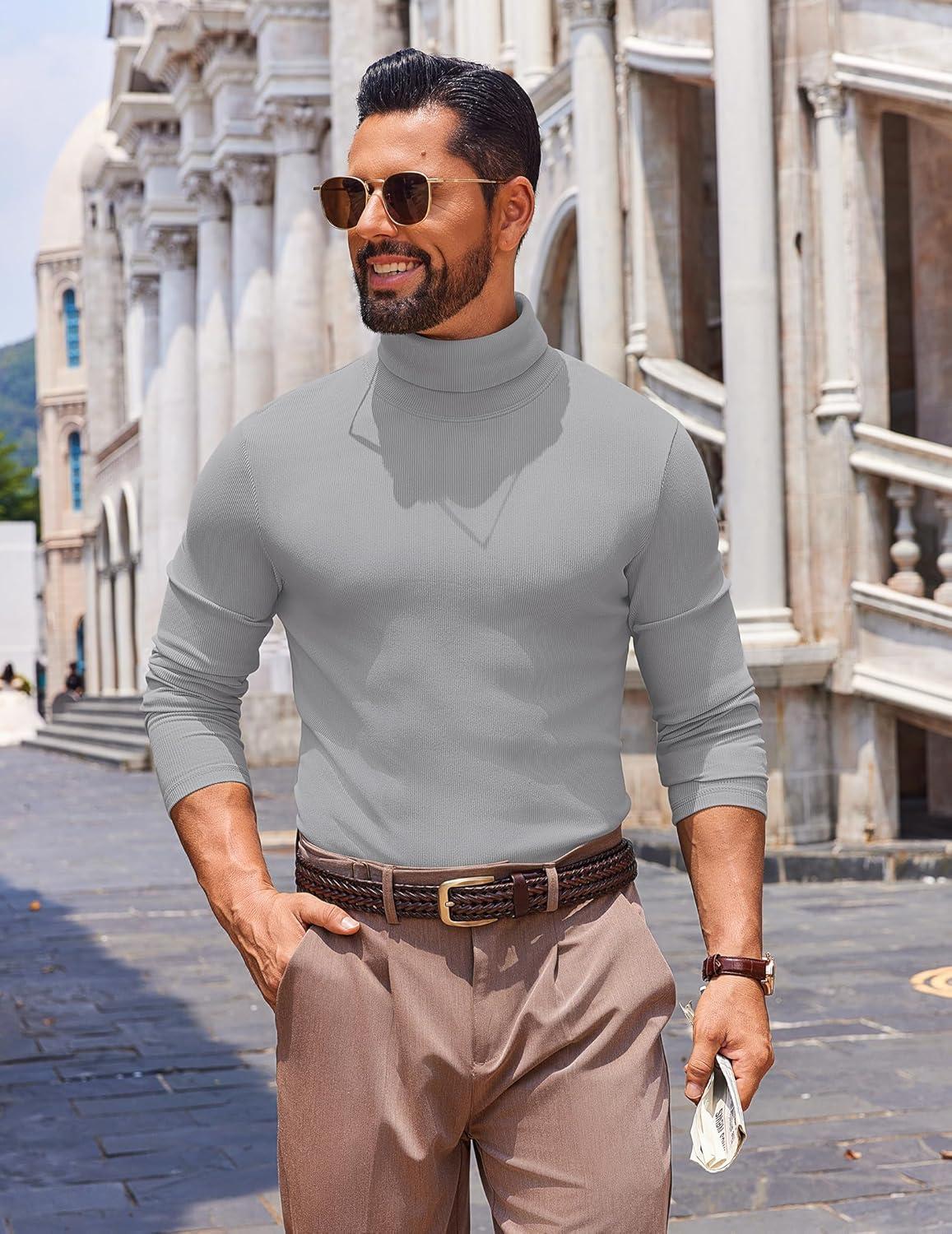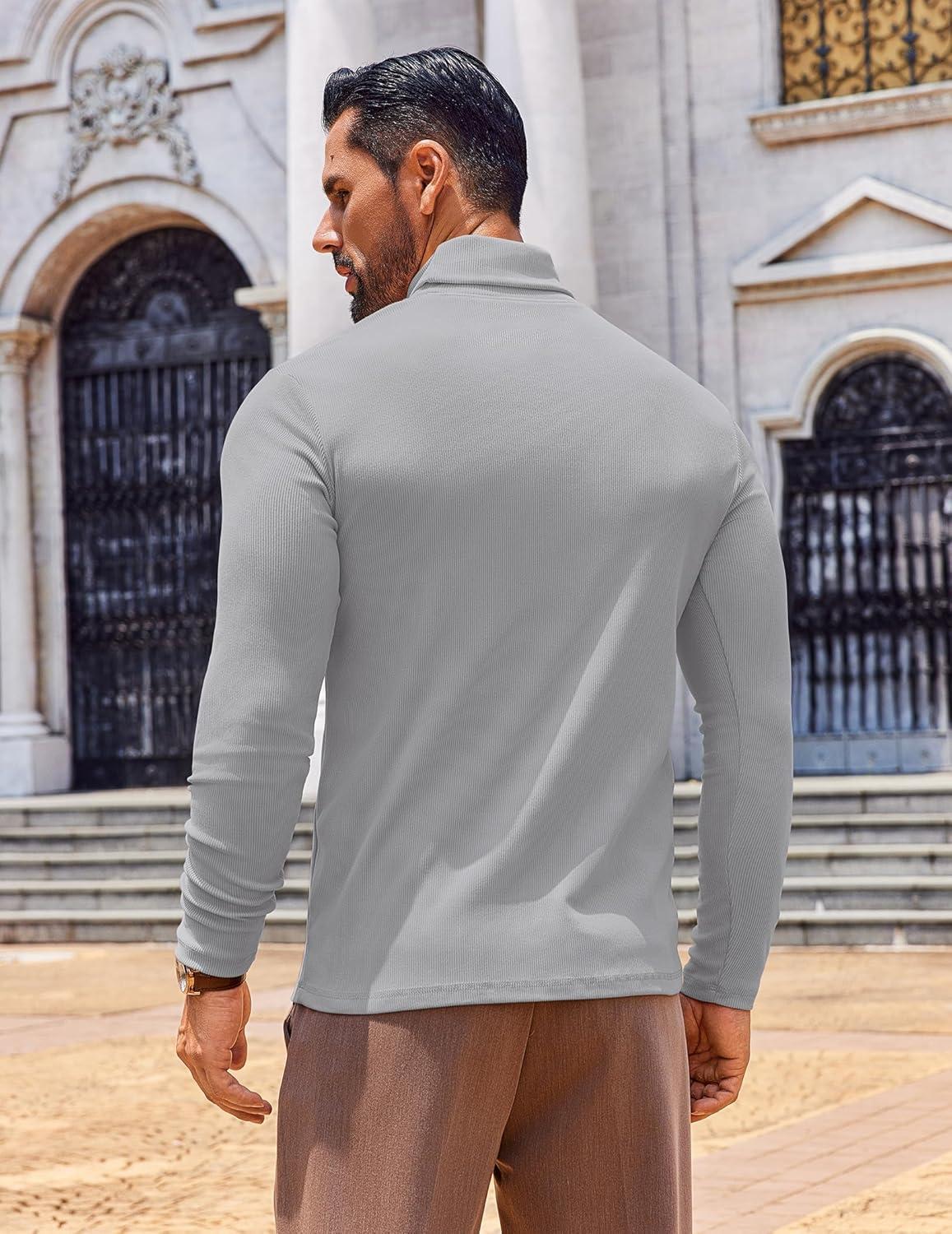COOFANDY Men’s Slim Fit Turtleneck Sweater Long Sleeve Ribbed Turtle Neck Casual Lightweight Basic Pullover Sweaters(Light Gray)