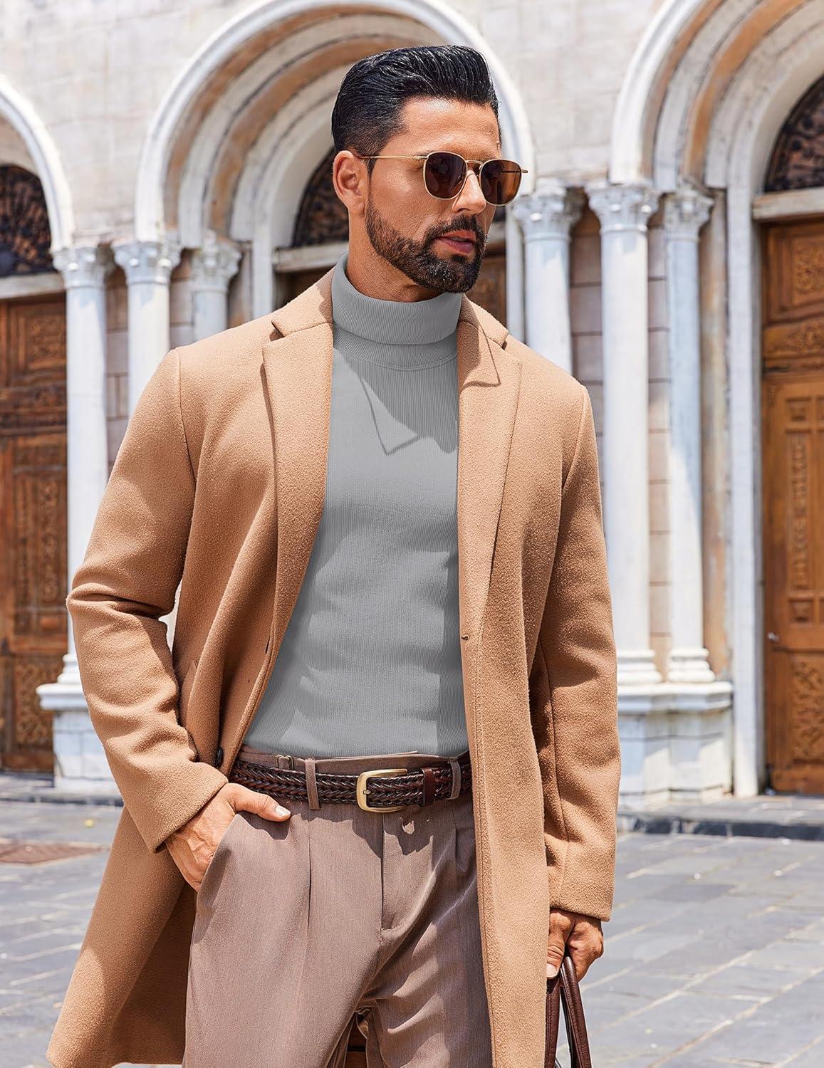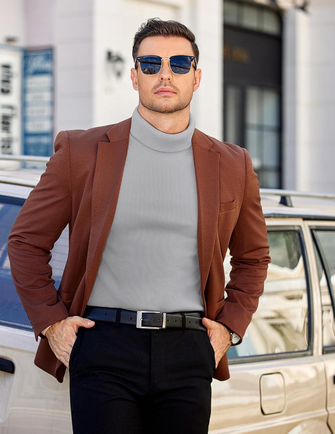COOFANDY Men’s Slim Fit Turtleneck Sweater Long Sleeve Ribbed Turtle Neck Casual Lightweight Basic Pullover Sweaters(Light Brown)