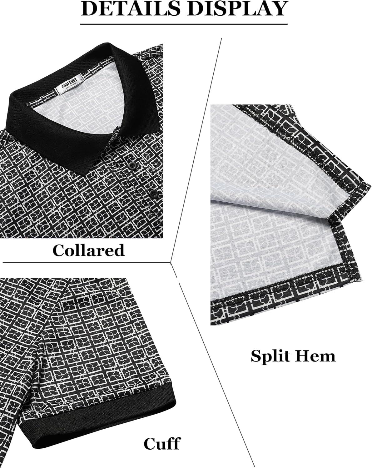 COOFANDY Men's Polo Shirts Short Sleeve Print Performance Golf Shirts Fashion Casual Beach Collared T-Shirts