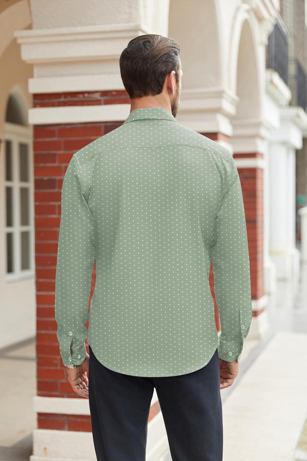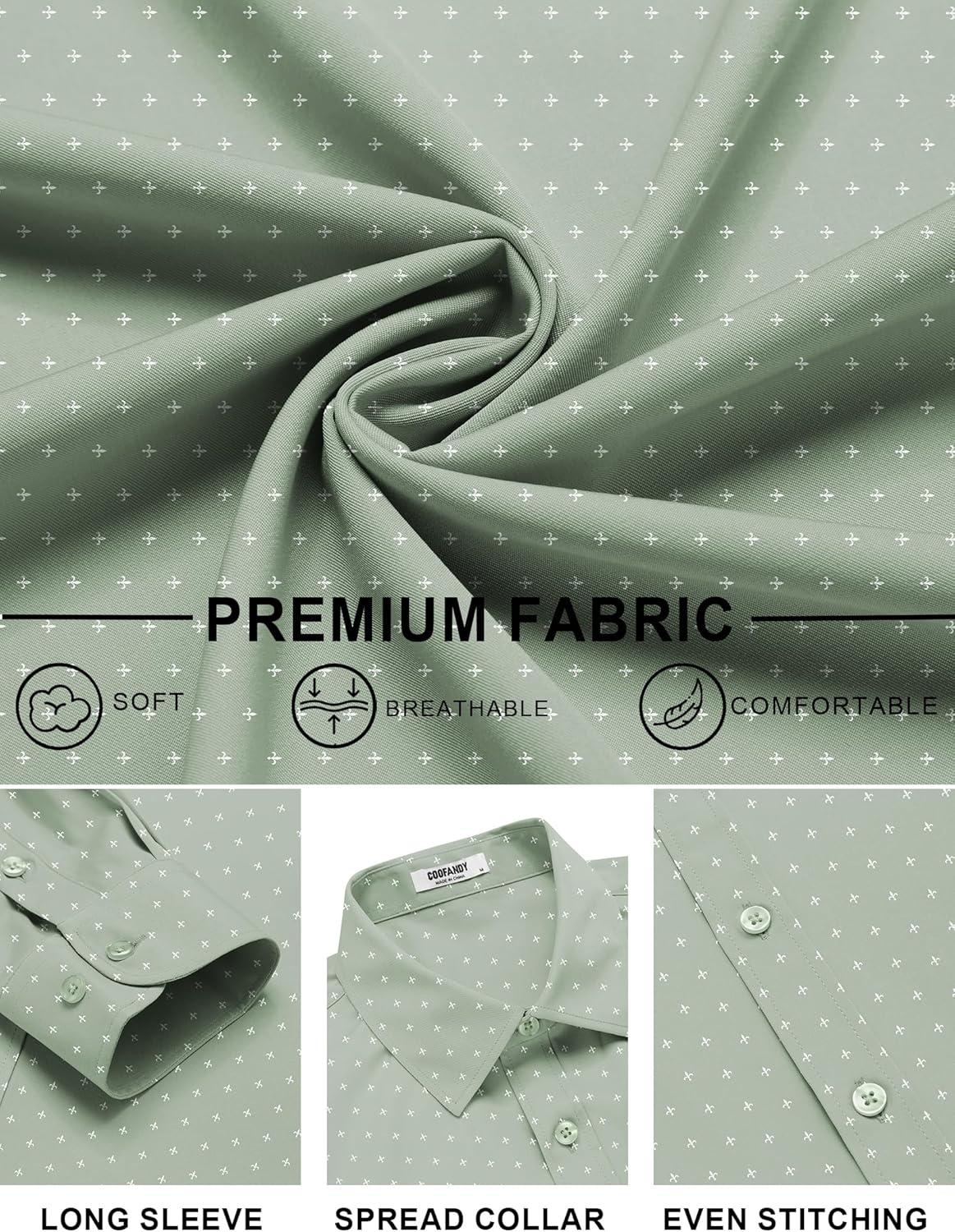 COOFANDY Mens Stretch Dress Shirts Long Sleeve Button Down Shirt Regular Fit Formal Business Shirts(Light Green-flower)