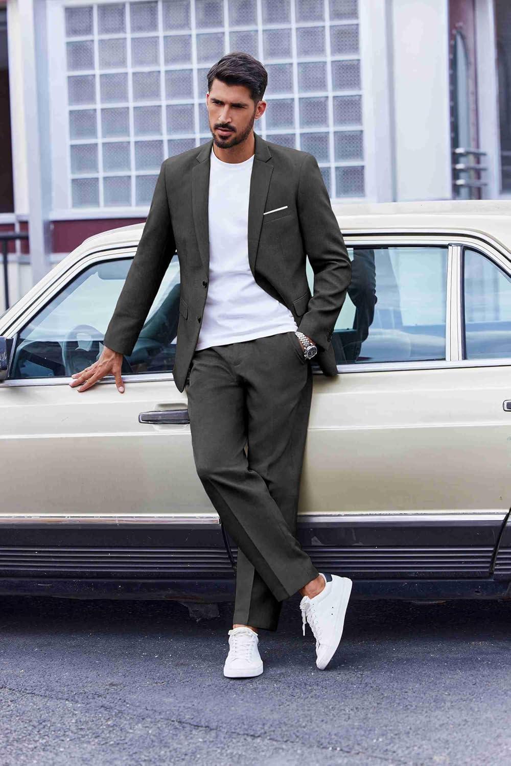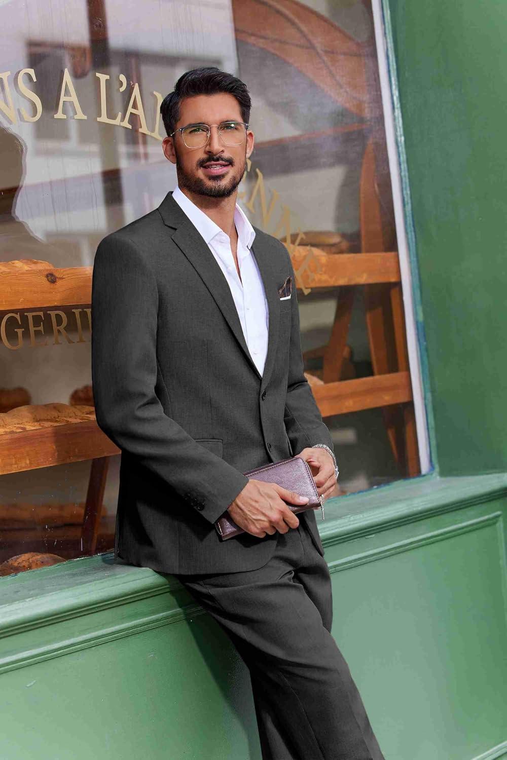 COOFANDY Mens Suit 2 Piece Suit Classic Fit Two Button Blazer Jacket Pants Set Business Wedding Party Suits for Men(Dark Gray)