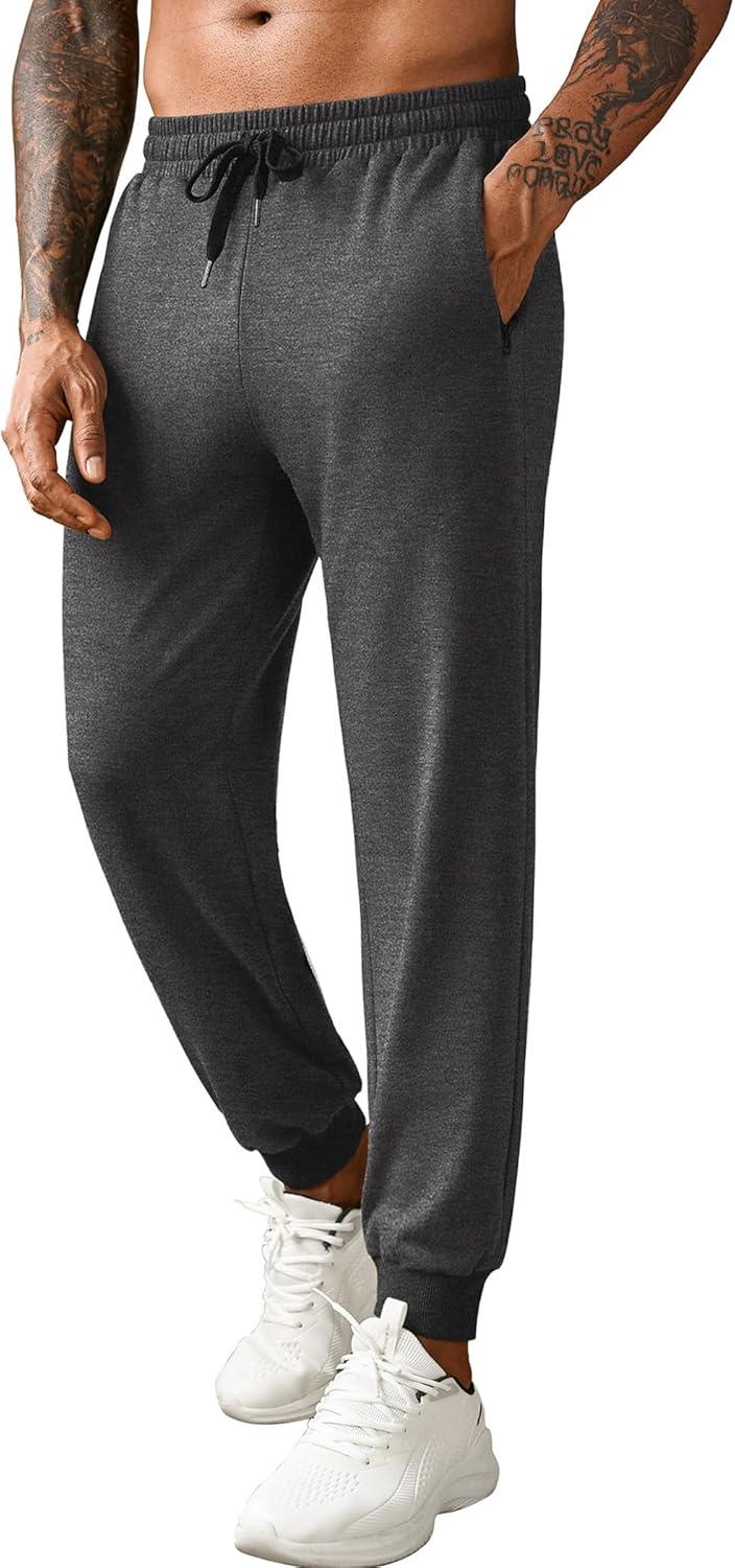 COOFANDY Men’s Sweatpants Joggers Workout Casual Athletic Gym Pants Lightweight Elastic Wasit Sweatpants with Pockets(2 Pack: Black/Dark Grey)