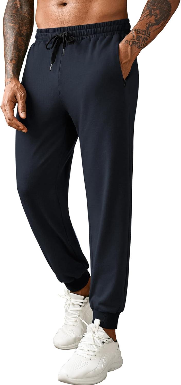 COOFANDY Men’s Sweatpants Joggers Workout Casual Athletic Gym Pants Lightweight Elastic Wasit Sweatpants with Pockets(2 Pack: Black/Navy Blue)