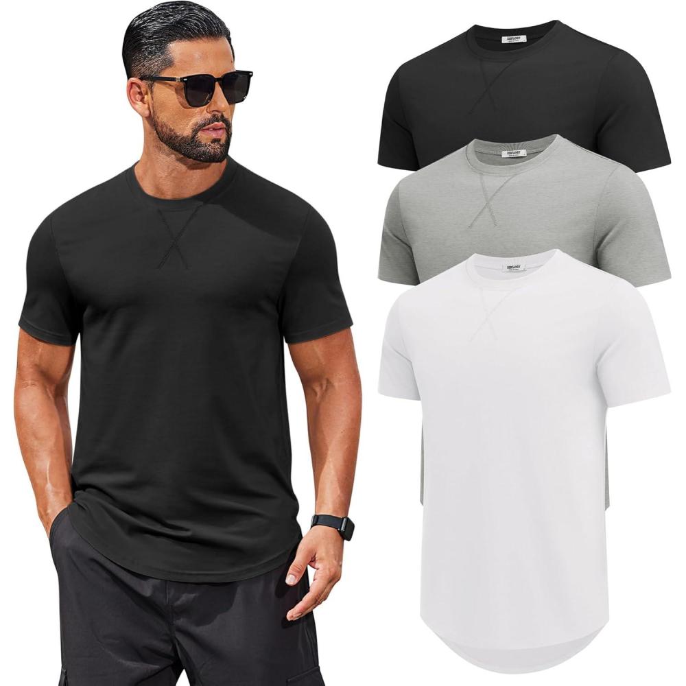 COOFANDY Mens T Shirts Casual Short Sleeve Cotton Tee Shirts Hipster Hip Hop Longline T-Shirt Basic Summer Tops(3 Pack- Black/ Dark Grey / Grey)