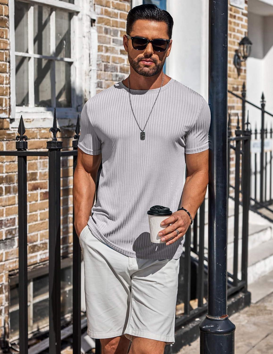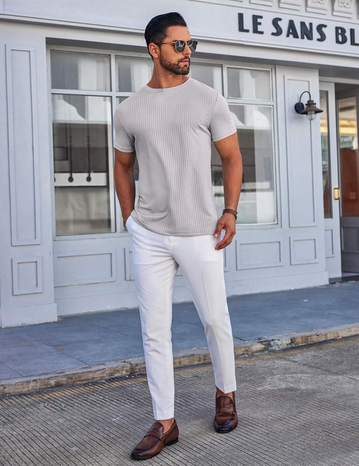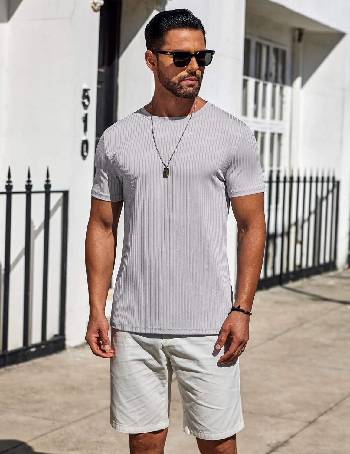 COOFANDY Mens T-Shirts Short Sleeve Plain Tshirts Casual Crew Neck Basic T Shirt Soft Cooling Fitted Stretch Tee Shirts(Light Grey)