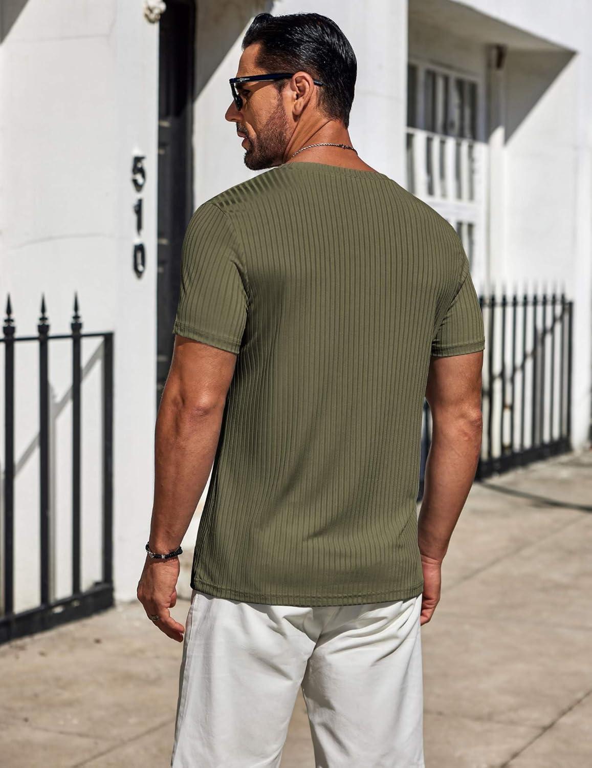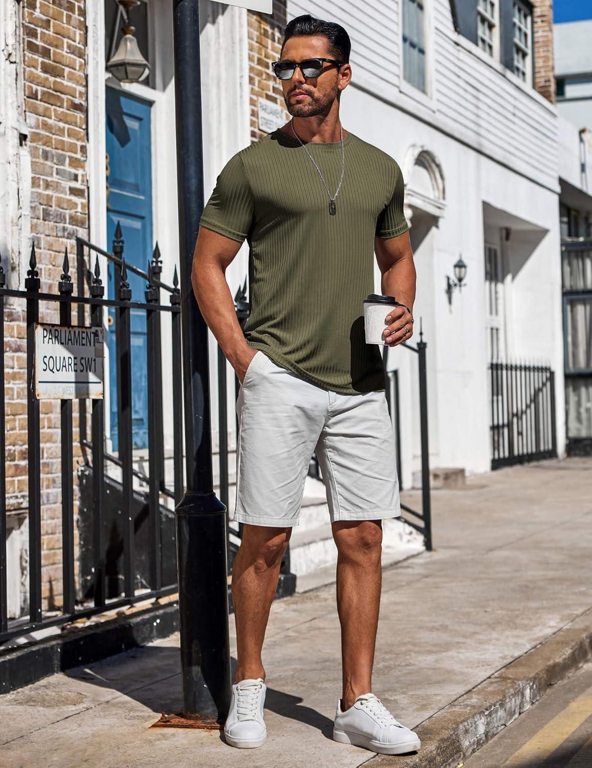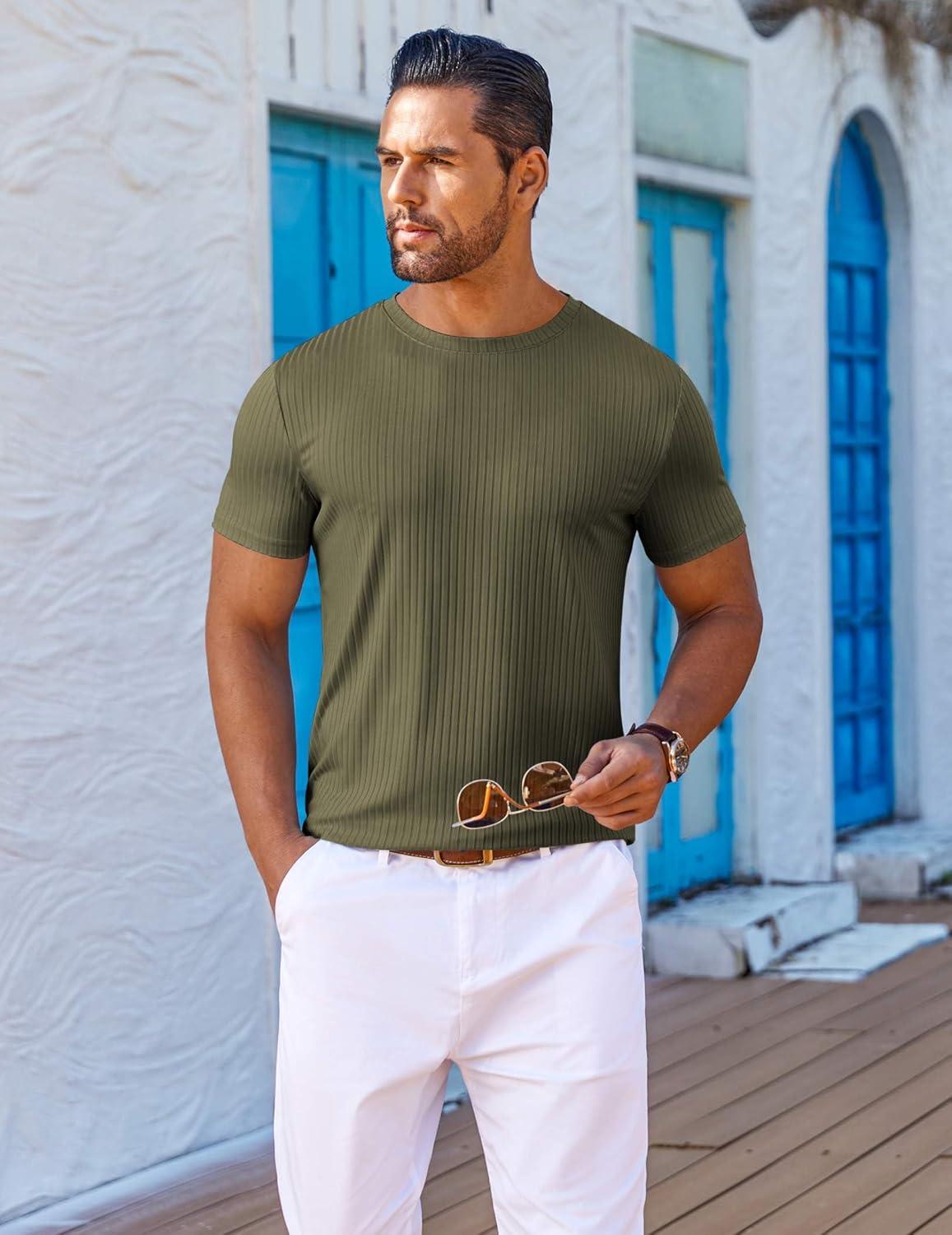 COOFANDY Mens T-Shirts Short Sleeve Plain Tshirts Casual Crew Neck Basic T Shirt Soft Cooling Fitted Stretch Tee Shirts(Olive Green)