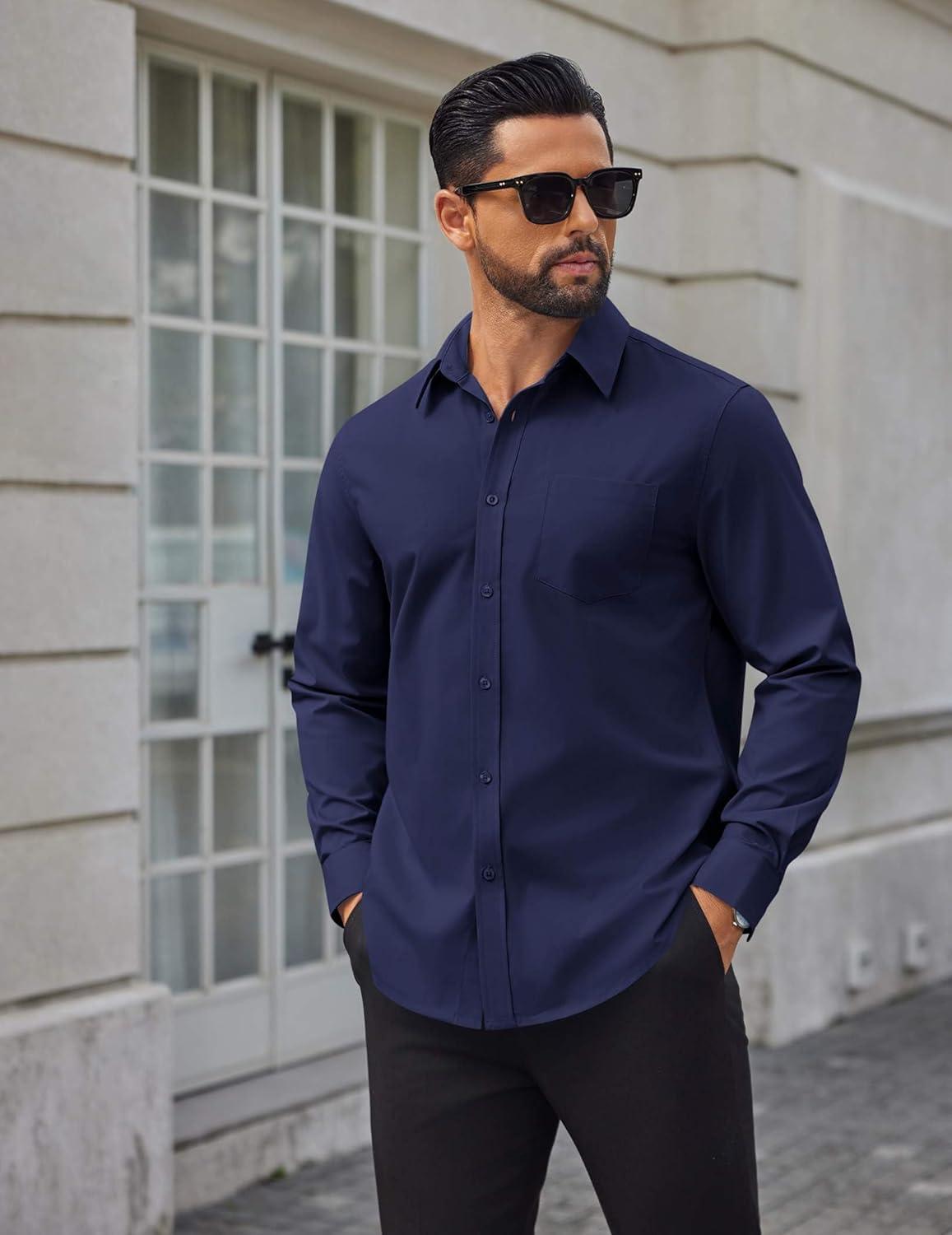 COOFANDY Mens Tech Dress Shirts Long Sleeve Poplin Formal Shirt Casual Button Down Shirts(Navy)