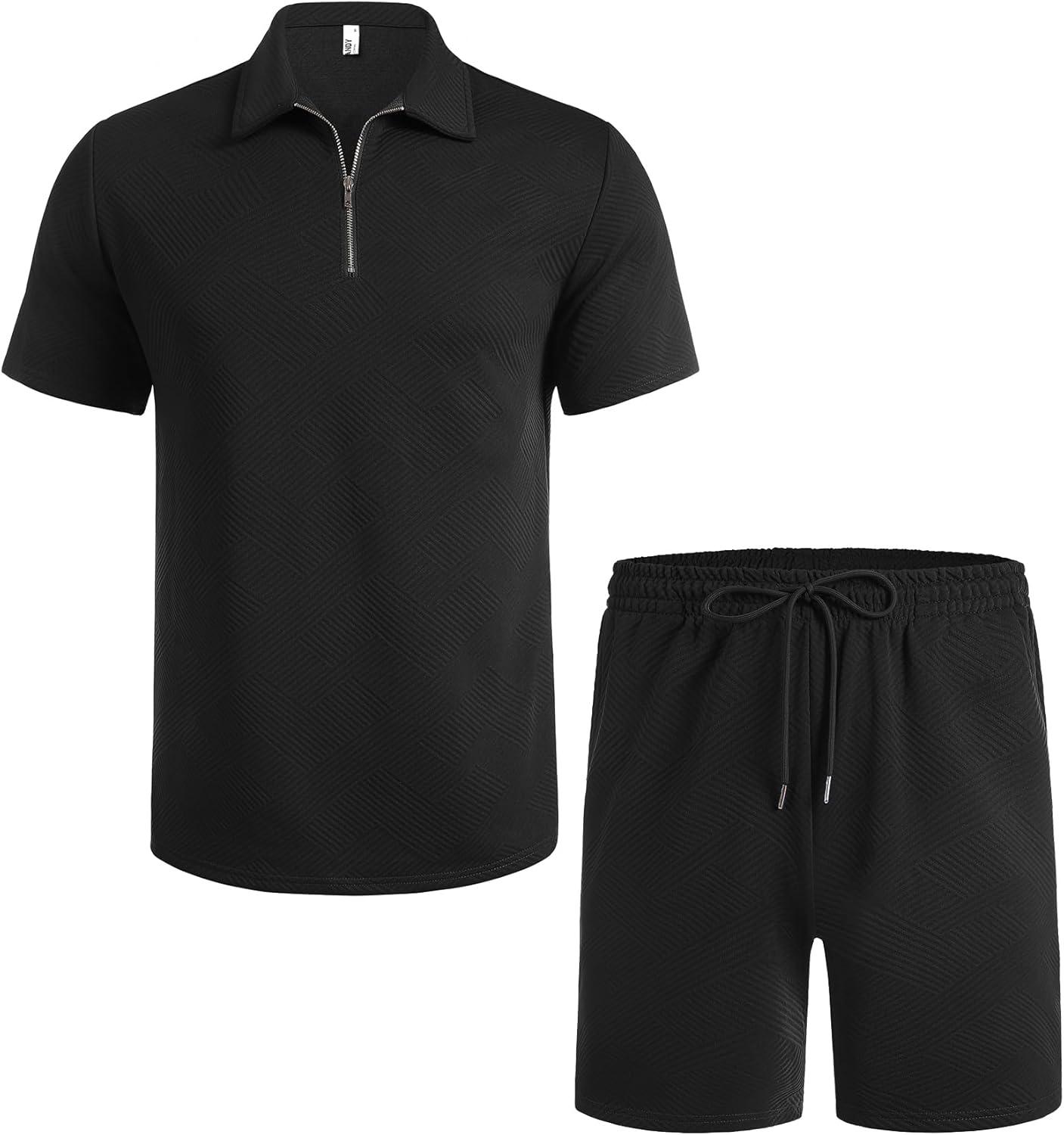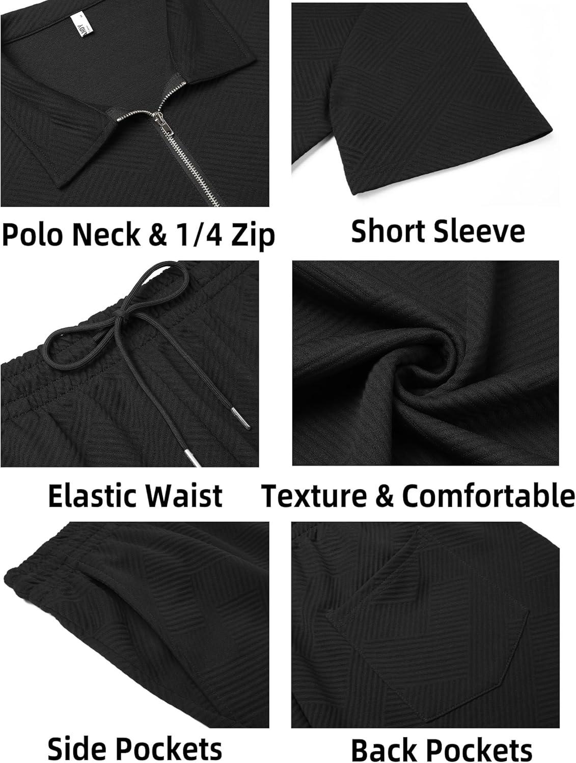 COOFANDY Mens Tracksuit Casual 2 Piece Quarter Zip Polo Shirt and Shorts Set Athletic Jogging Sports Outfits(Black)
