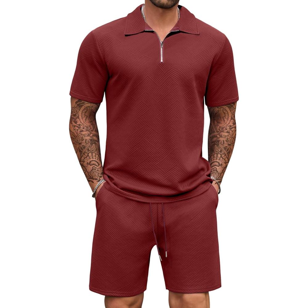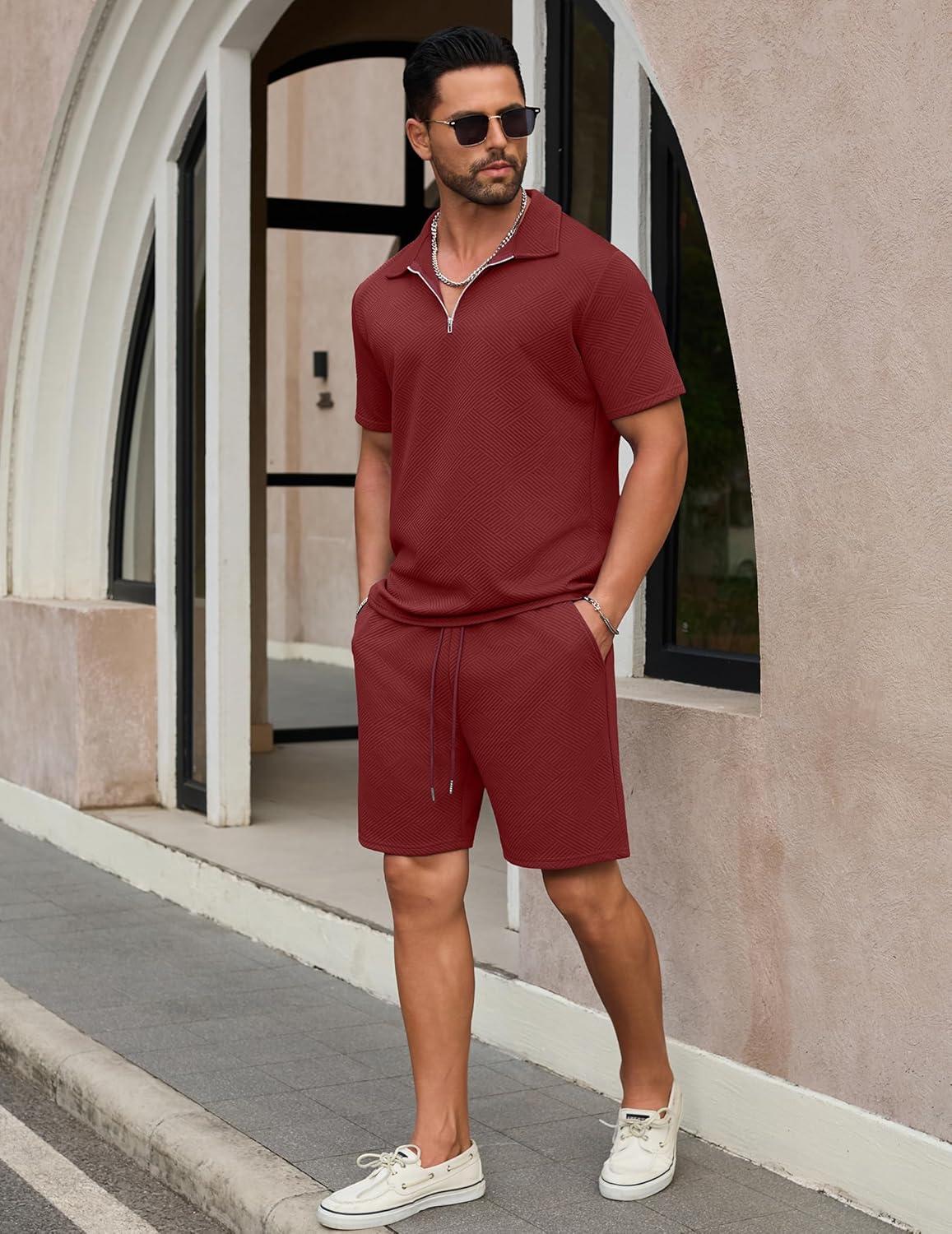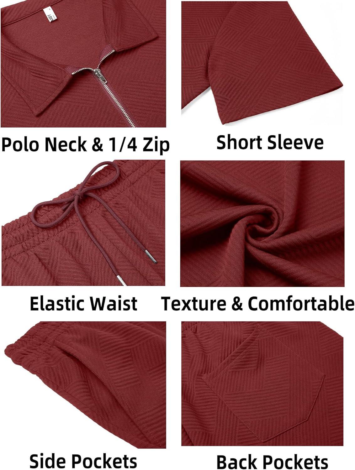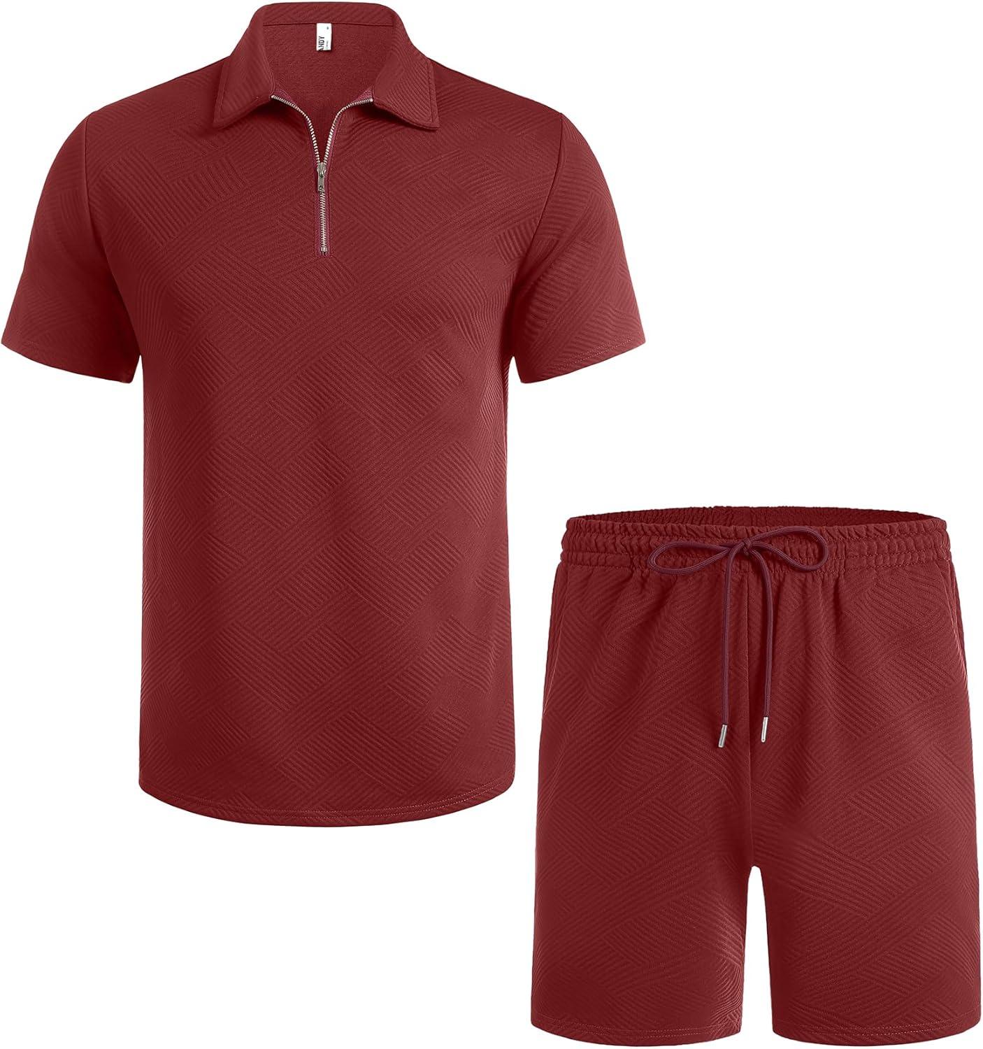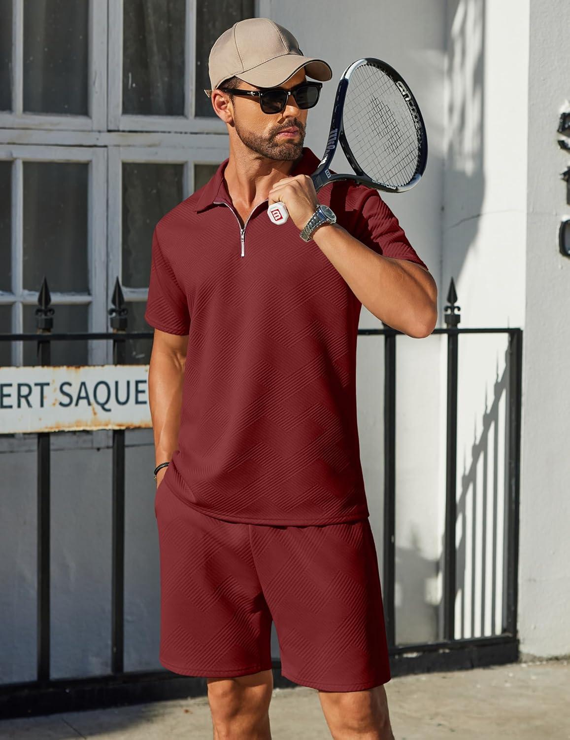 COOFANDY Mens Tracksuit Casual 2 Piece Quarter Zip Polo Shirt and Shorts Set Athletic Jogging Sports Outfits(Wine Red)