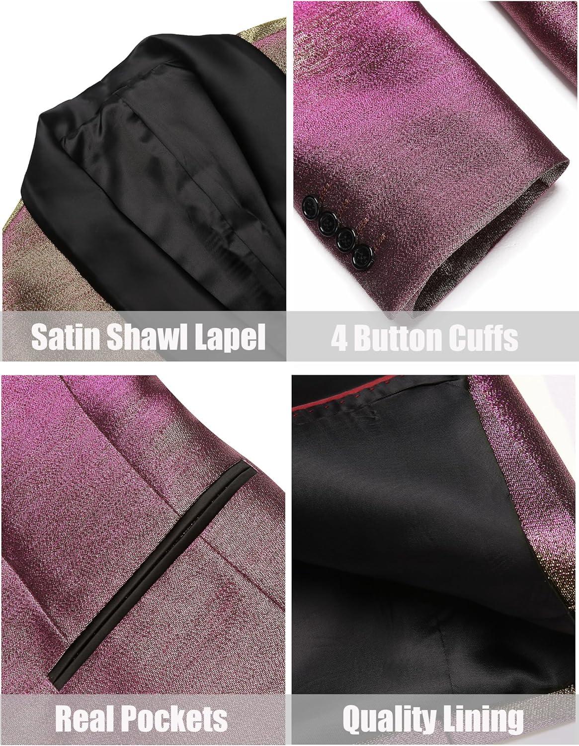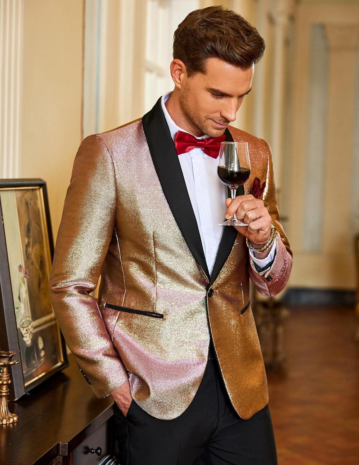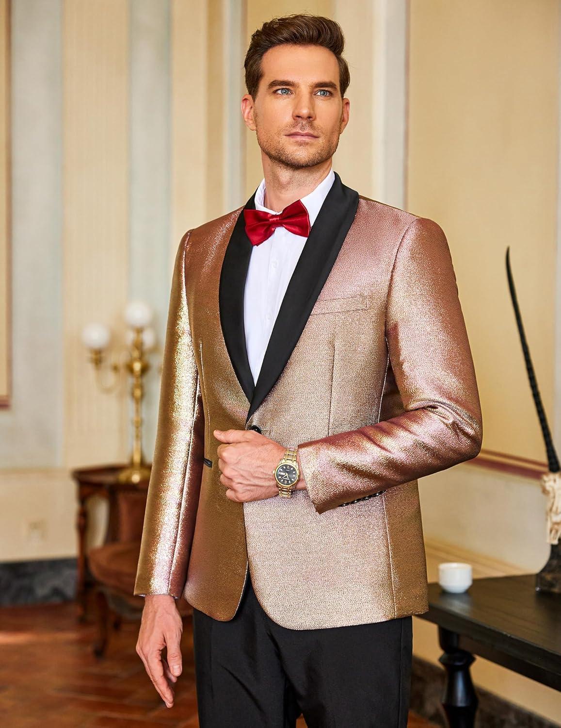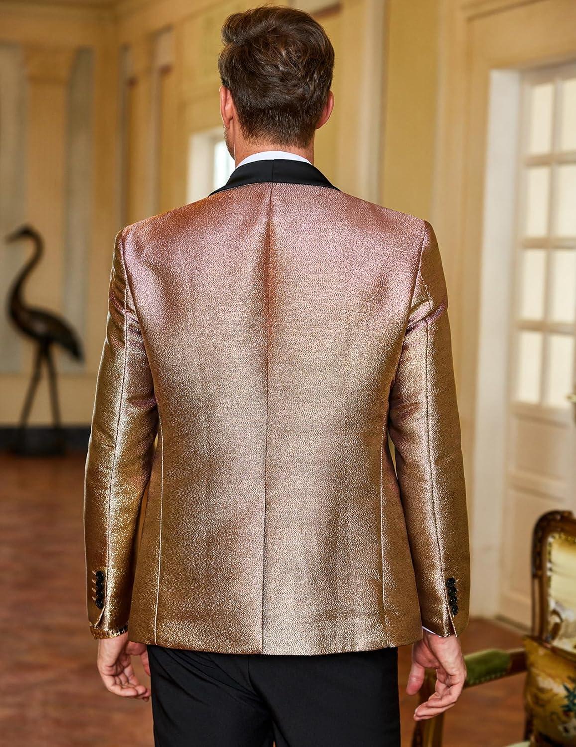 COOFANDY Men’s Tuxedo Jacket Slim Fit Shawl Lapel Blazer One Button Suit Jackets for Party Prom Wedding Dinner(A-rose Golden)