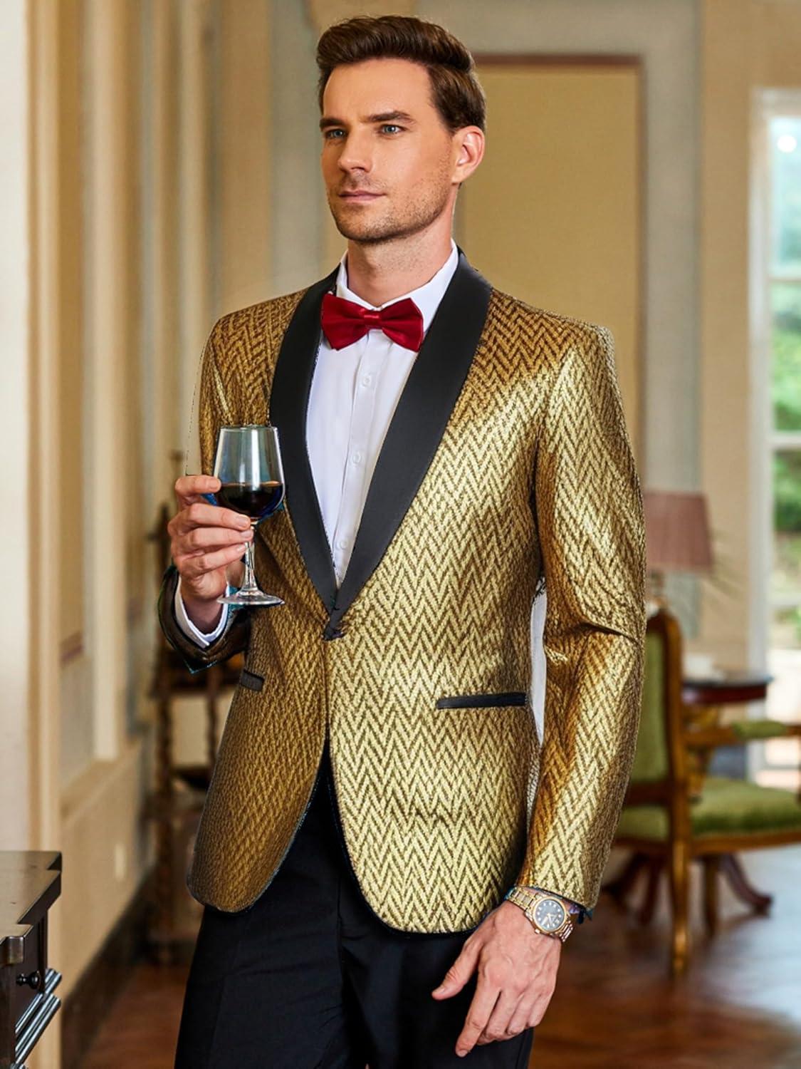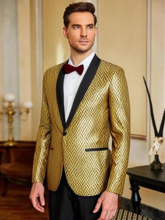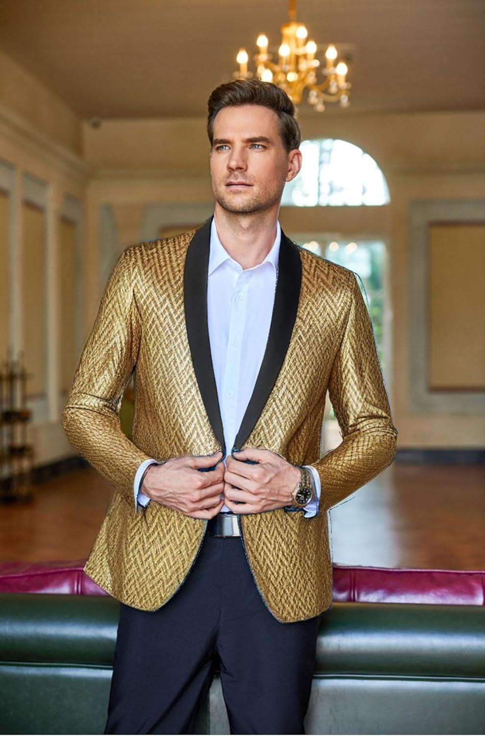 COOFANDY Men’s Tuxedo Jacket Slim Fit Shawl Lapel Blazer One Button Suit Jackets for Party Prom Wedding Dinner(Golden Yellow)