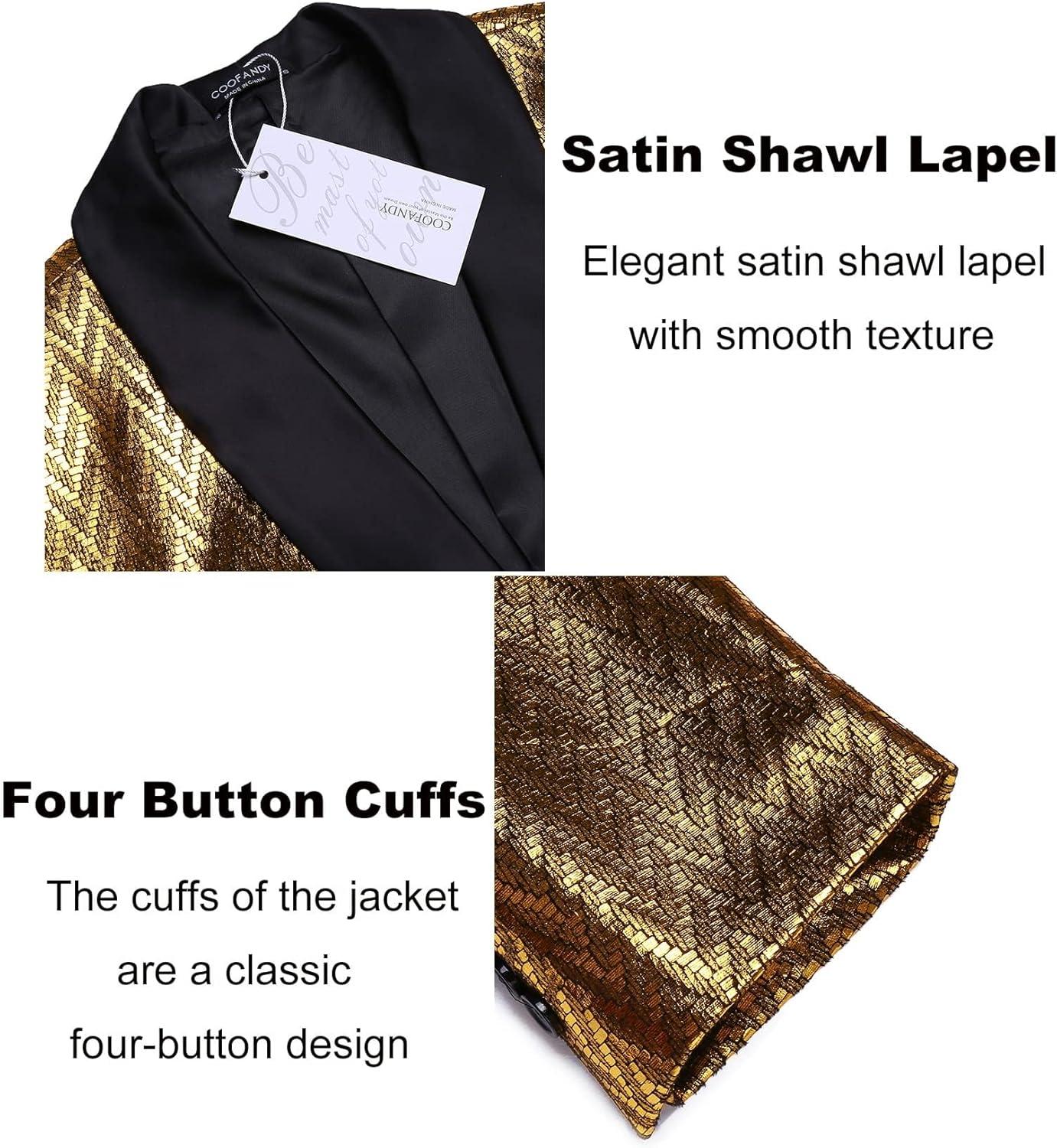 COOFANDY Men’s Tuxedo Jacket Slim Fit Shawl Lapel Blazer One Button Suit Jackets for Party Prom Wedding Dinner(Shiny Silver)