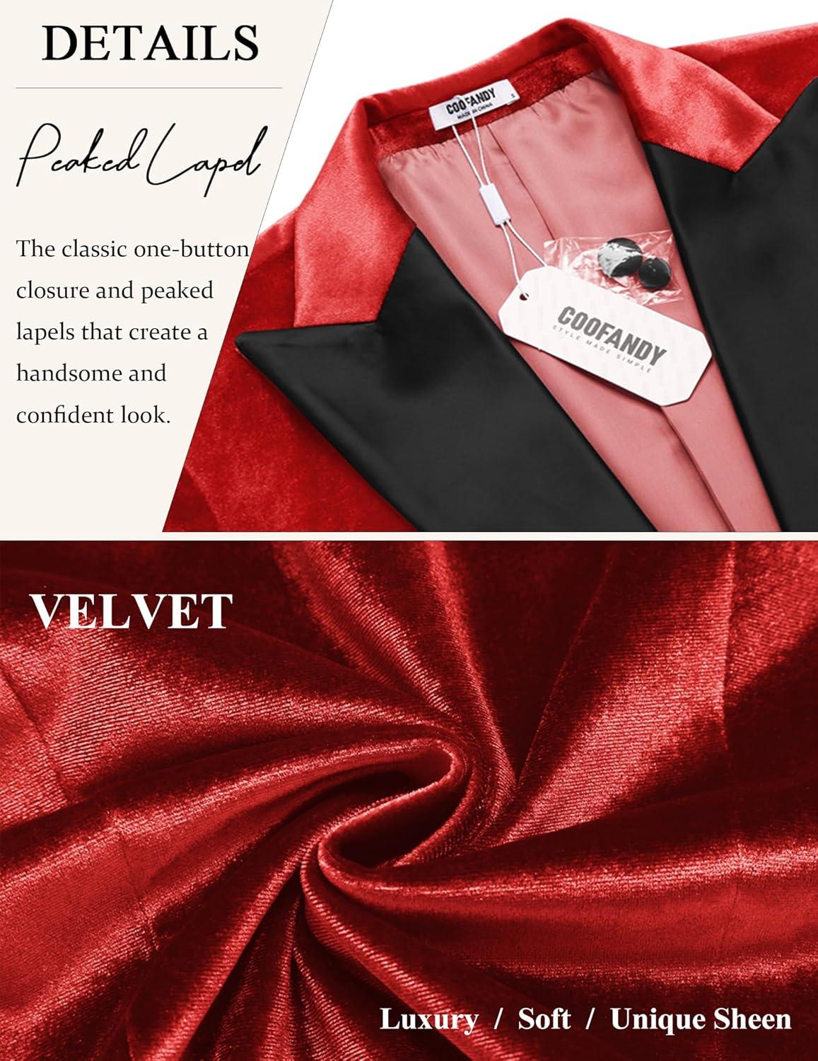 COOFANDY Mens Tuxedo Jacket Slim Fit Velvet Blazer One Button Suit Jacket for Wedding Prom Party(Red)