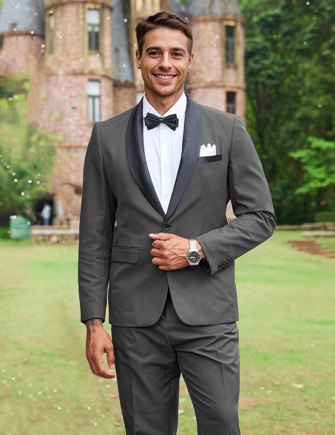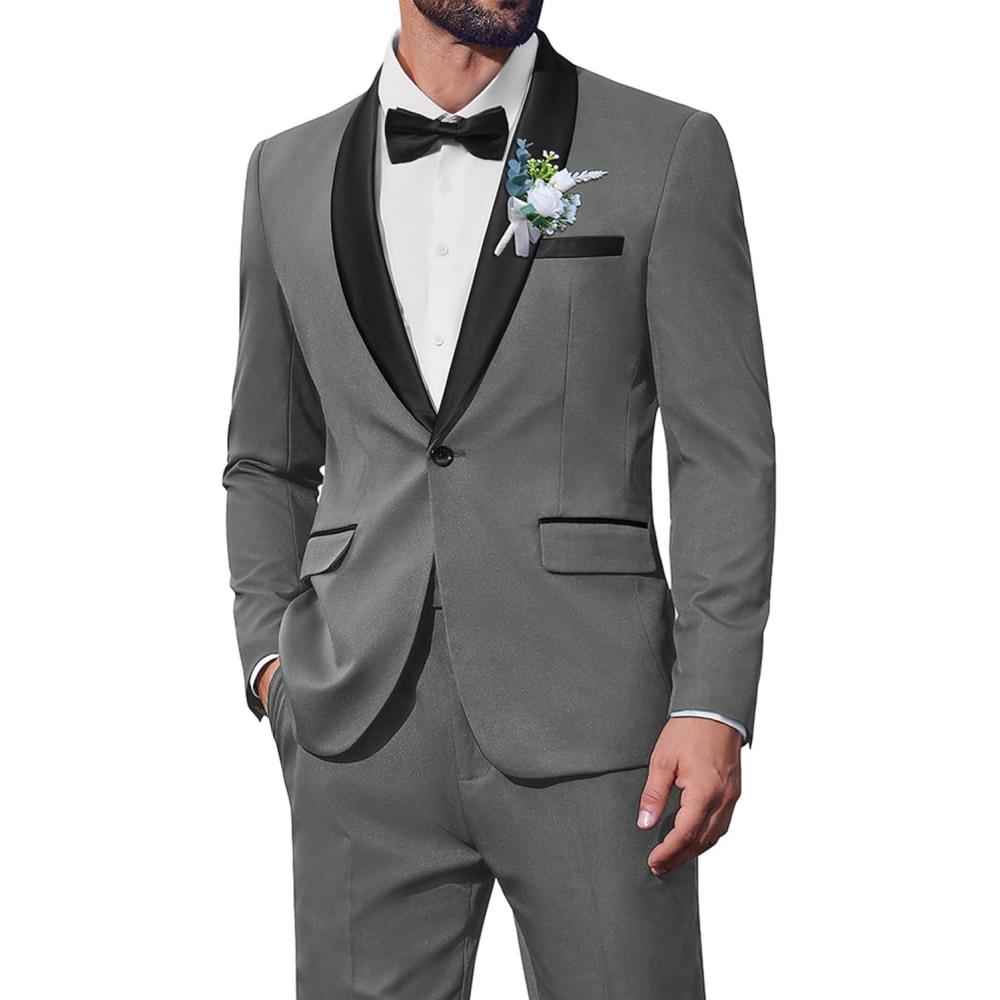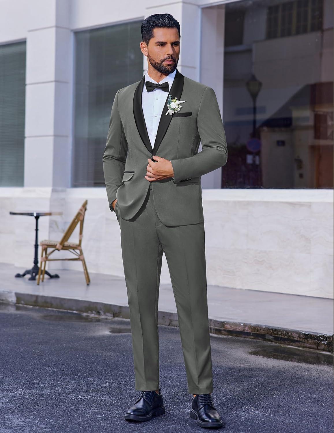 COOFANDY Mens Tuxedo Suit Set Slim Fit 2 Piece Dress Suit Shawl Lapel Tuxedo Jacket Pants for Wedding Dinner Prom Party(Dark Grey)