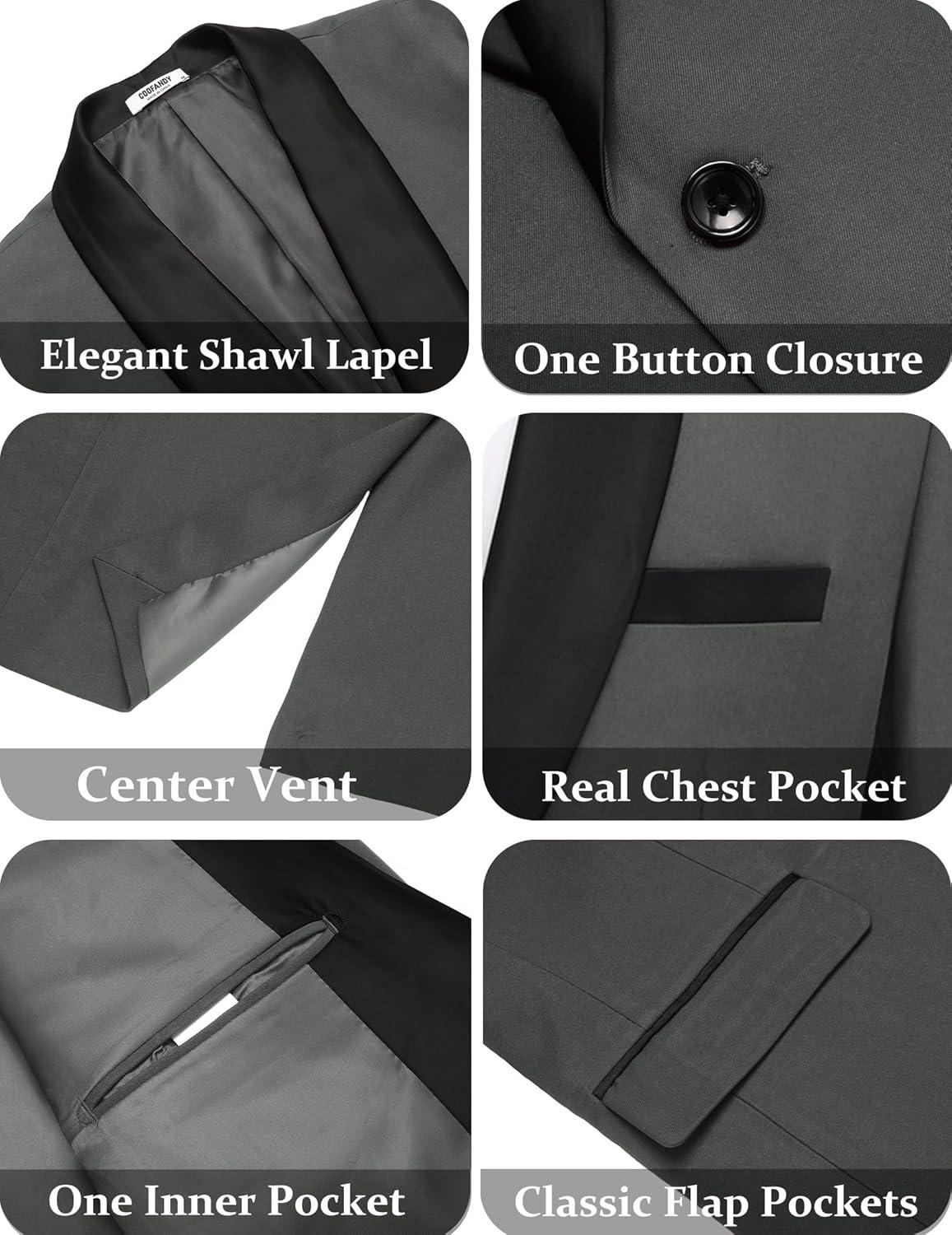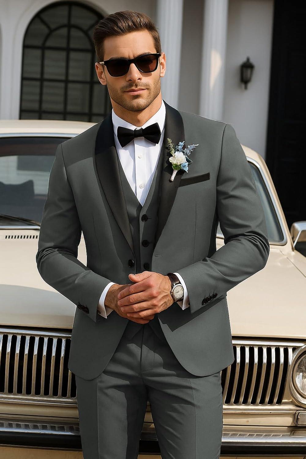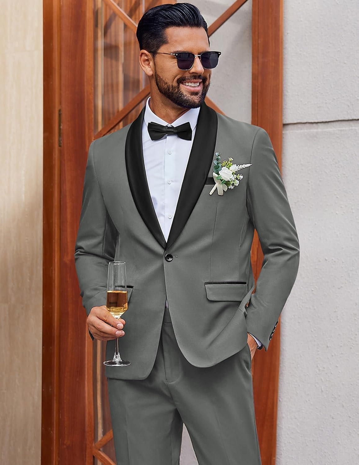 COOFANDY Mens Tuxedo Suit Set Slim Fit 2 Piece Dress Suit Shawl Lapel Tuxedo Jacket Pants for Wedding Dinner Prom Party(Dark Grey)