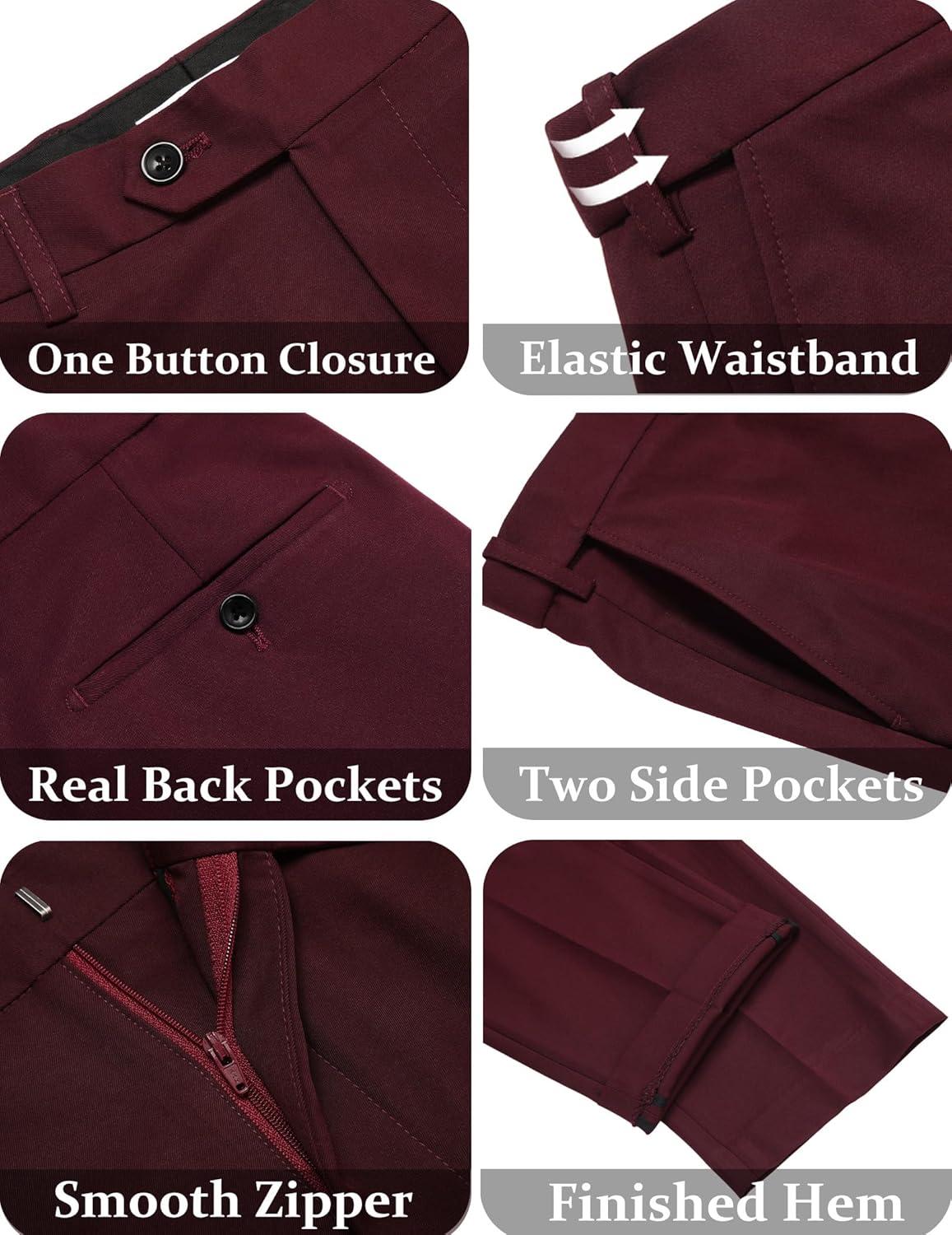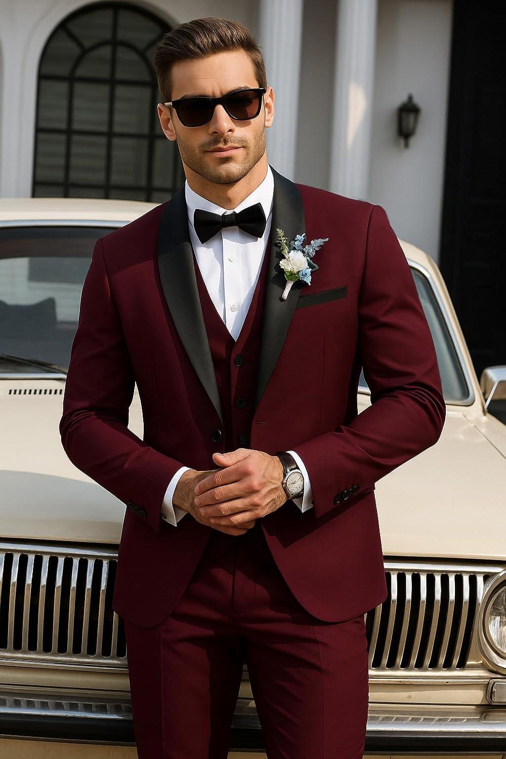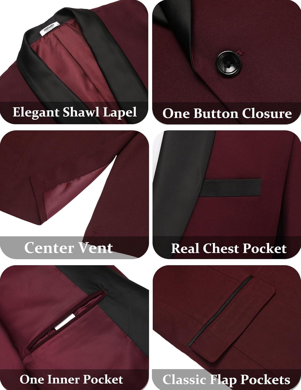 COOFANDY Mens Tuxedo Suit Set Slim Fit 2 Piece Dress Suit Shawl Lapel Tuxedo Jacket Pants for Wedding Dinner Prom Party(Wine Red)