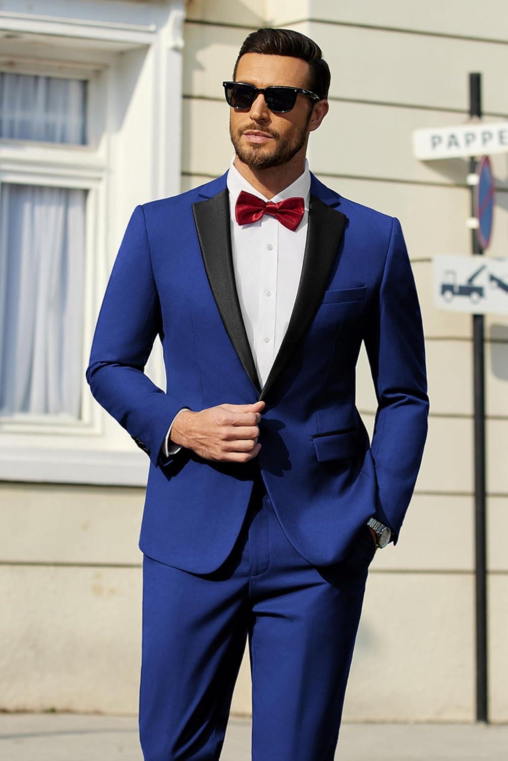 COOFANDY Mens Tuxedo Suit Set Slim Fit 2 Piece One Button Christmas Blazer Jacket Pants for Wedding,Dinner,Prom(Blue)